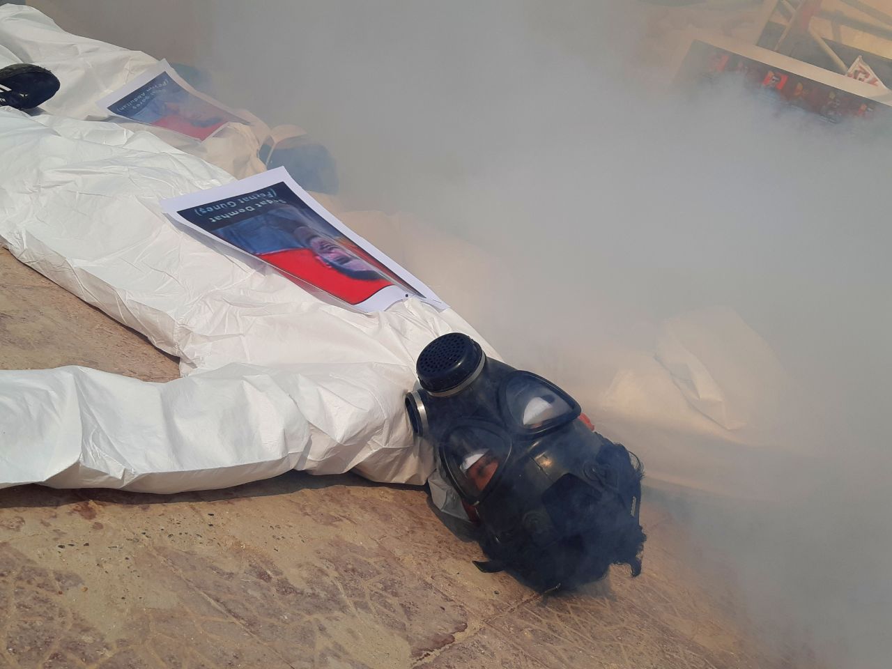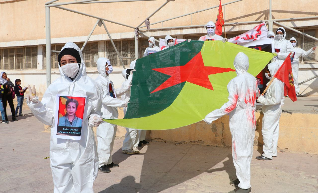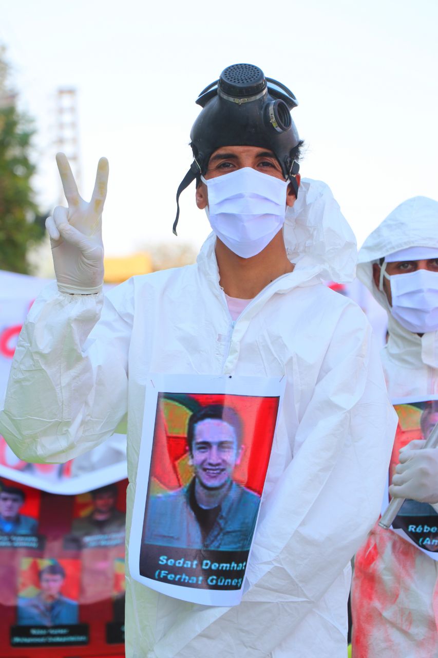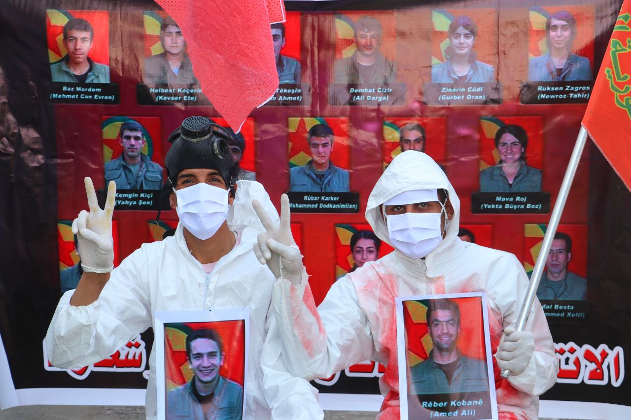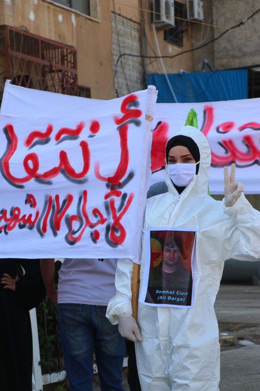 Di çalakiyê de komek xwendekar bi cilên spî û tedbîrên parastinê yên li dijî çekên kîmyewî, wêneyên 17 gerîlayên ku bi çekên kîmyawî şehîd bûne rakirin.