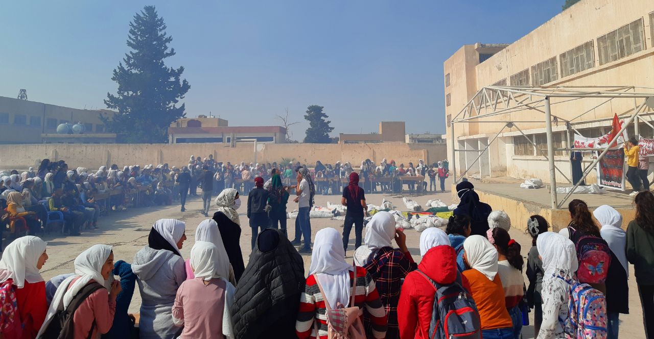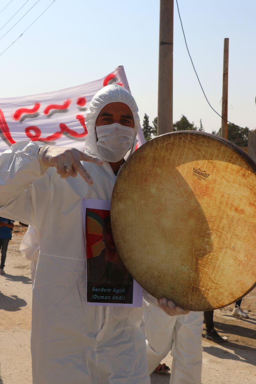 Piştî wê şanoyê, ciwanan ji dibistana şehîd Hevrîn dest bi meşekê kirin. Ciwanan di meşê de pankartên ku êrîşên dewleta Tirk a dagirker li ser Herêmên Parastina Medya û ser tevahî Herêmên Bakur-Rojhilatê Sûriyê şermazar dikir rakirin. Heman demê de bê navber silogan hatin berz kirin.