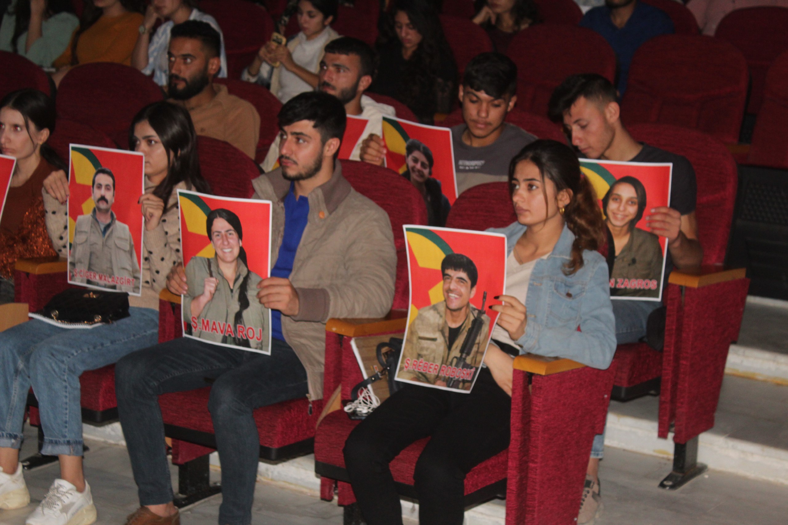 Wêneyê 17 gerîlayên azadiyê û şehîd Bêrîtan ve bi dîwaran ve hatibû daliqandin û xwendekaran xistibûn hembêza xwe de.