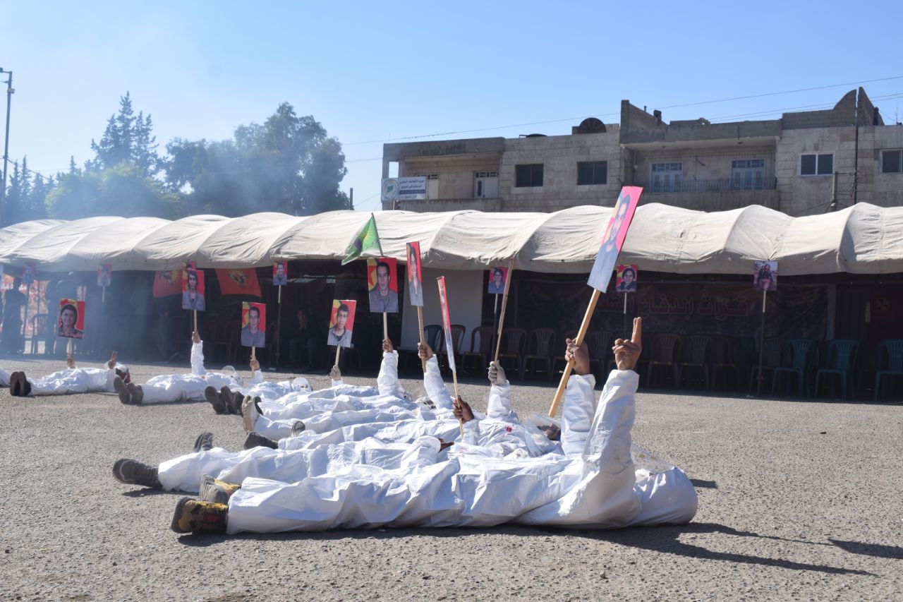 Îro di pêşengtiya Tevgera Ciwanên Şoreşger û Yekîtiya Jinên Ciwan ya Herêma Cizîrê de ji bo şermezar kirina bi kar anîna çekên kîmyawî ji aliyê dewleta Tirk a dagirker ve li ser gerîla li herêmên parastina medya yê , metîngek li sitdgeha Heysem Kiço a ku li Bakurî Rojavayê Qamişlo hate li dar xistin , bi sedan Ciwan û Jinên Ciwan ji Herêma Cizîrê herikîn Sitadgehê li sitadgehê bi alên PKK û wêneyên Serokatî hatibû xemilandin her wiha wêneyên 17 şehîdên ku bi çekêm kîmyawî şehîd bûne hatibûn xemilandin li aliyekî din jî pêşengeh jî hatibû pêşkêş kiRin di pêşengehê de hemû alavên ku gerîla bi kar tîne di jiyanê de weke Şal, Şapik, Şeleme, Maqap hatibû pêşkêş kirin .