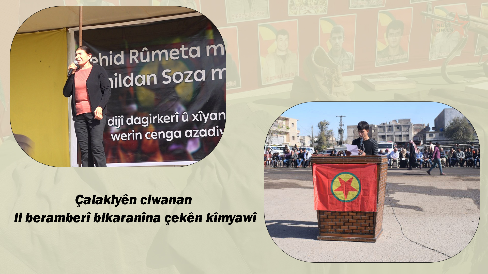 NAVENDA NÛÇEYAN-Îro bi pêşengtiya Tevgera Ciwanên Şoreşger û Yekîtiya Jinên Ciwan ya Herêma Cizîrê de bi kar anîna çekên kîmyawî ji aliyê dewleta Tirk a dagirker ve hat şermezar kirin her wiha berxwedana gerîla hat silav kirin. Çardin Ciwanên Minbicê ji bo êrîşên li ser gerîla kon vekirin.