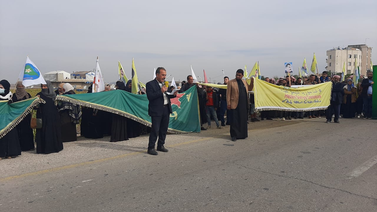 Li ser navê Meclîsa Gel a Kesradanê Ehmed Hemûd axivî. Hemûd di serî de êrîş şermezar kir û bal kişand ser bêdengiya hêzên gerantor ên li herêmê. Dîsa Hemûd qala rola van hêzan a li êrîşên ser Bakur û Rojhilatê Sûriyeyê jî kir.