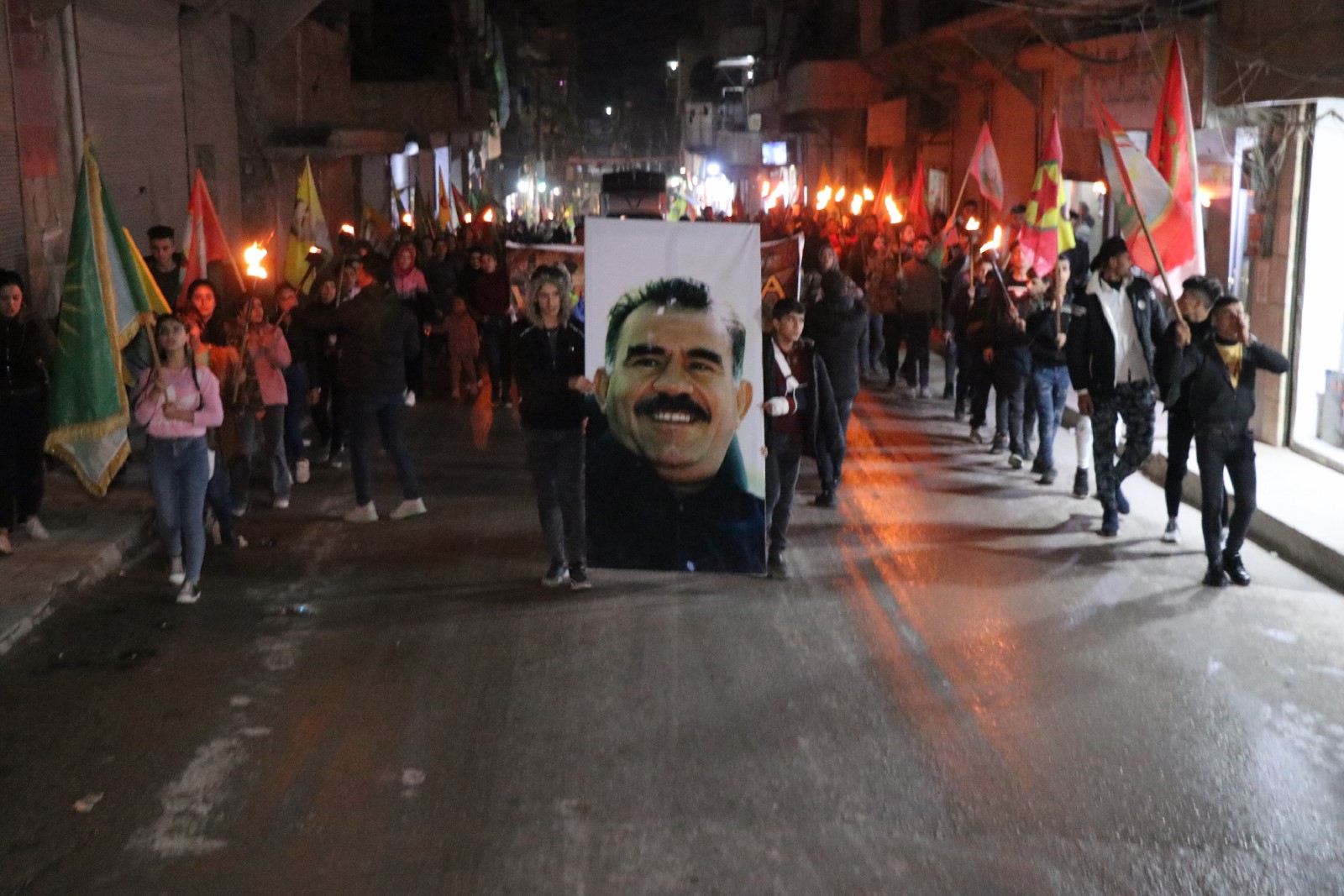 Komîteya Ciwanan a Meclisa Malbatên Şehîdan a Helebê xwepêşandan orgenîz kir. Bi sedan ciwan li pêşiya hola civînan a li rojavayê taxa Şêxmeqsûd kom bûn û alên Tevgera Ciwanên Şoreşger a Sûriyê û Tevgera Jinên Ciwan, wêneyên rêber Apo û meşale hildan.