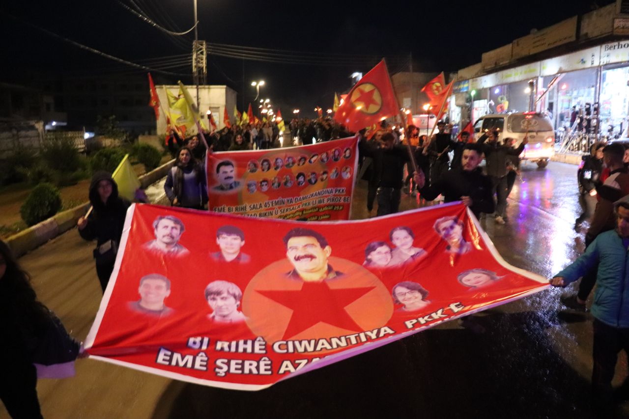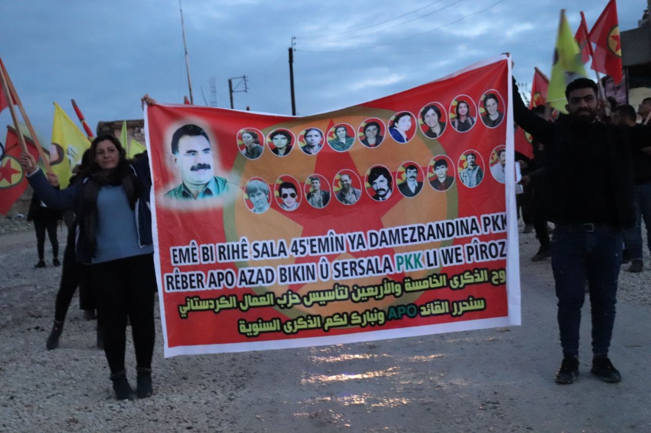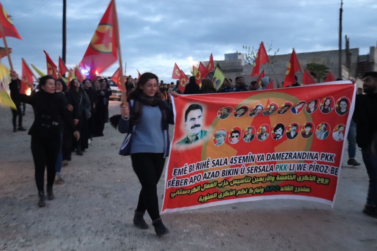 Li bajarê Kobanê Tevgera Ciwanên Şoreşger û Yekitiya Jinên Ciwan rûxmê hemû êrîşê dagirkeriye daketin qadan û salvegera 45 emîn Partiya Karkerên Kurdistan(PKK) pîrozkirin.