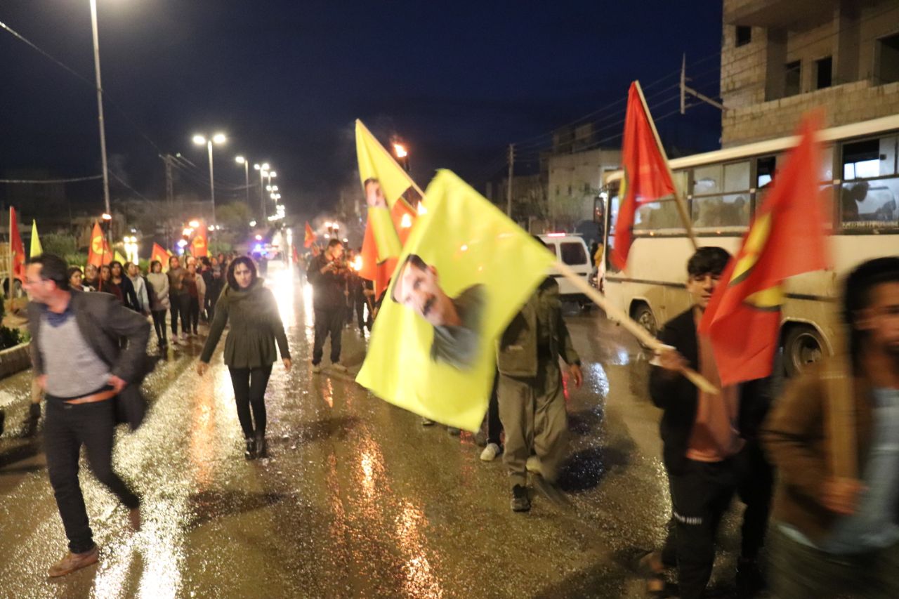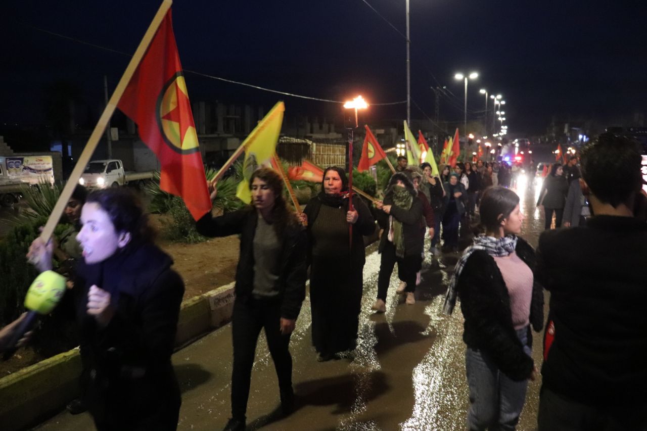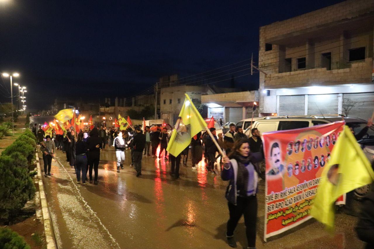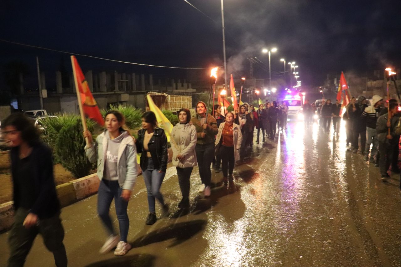 NAVENDA NÛÇEYAN- Li bajarê Kobanê Tevgera Ciwanên Şoreşger û Yekitiya Jinên Ciwan rûxmê hemû êrîşê dagirkeriye daketin qadan û salvegera 44 emîn Partiya Karkerên Kurdistan(PKK) pîrozkirin.