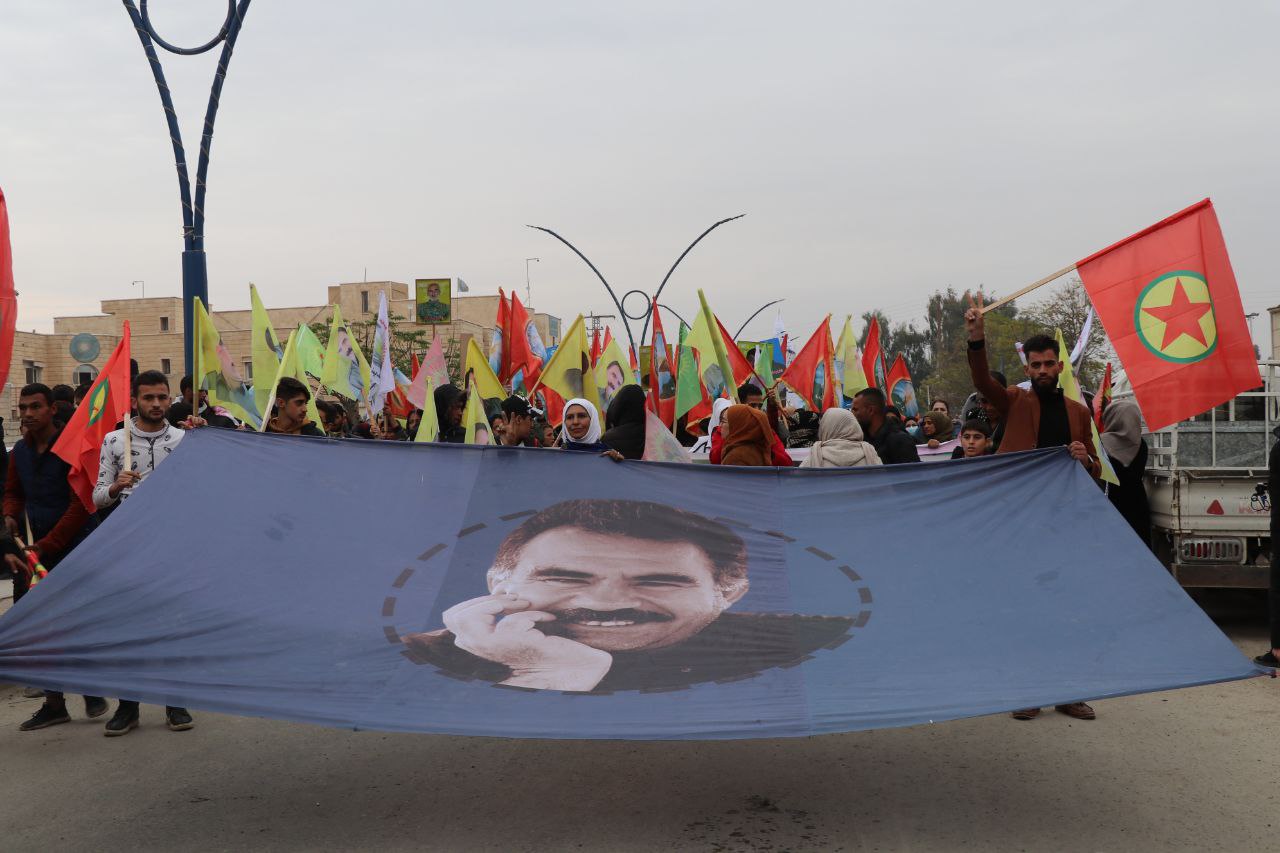 Li çarxerêyê xwepêşandan vegerî mîtîngê. Li wir hevseroka Tevgera Ciwanên Şoreşger a Sûriyê Buşra Elî axivî û wiha got: “Em salvegera 44′emîn  a damezrandina PKK′ê li tevahî gelên cîhanê û gelê Bakur û Rojhilatê Sûriyê pîroz dikin.”