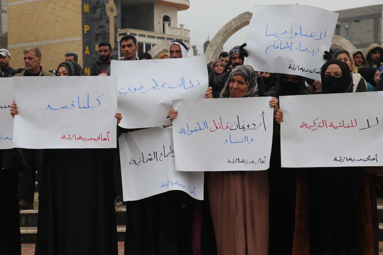 REQA– Bi dehan şêniyên Reqayê, rûspiyên eşîran, endamên Meclisa Malbatên Şehîdan û endamên Kombûna Jinan a Zenûbiya şaxê Reqayê tevlî çalakiyê bûn û pankertên bi nivîsên “Hêzên Sûriya Demokratîk dengê gel” , “Na ji dagirkeriya Tirk re” hatin bilindkirin.