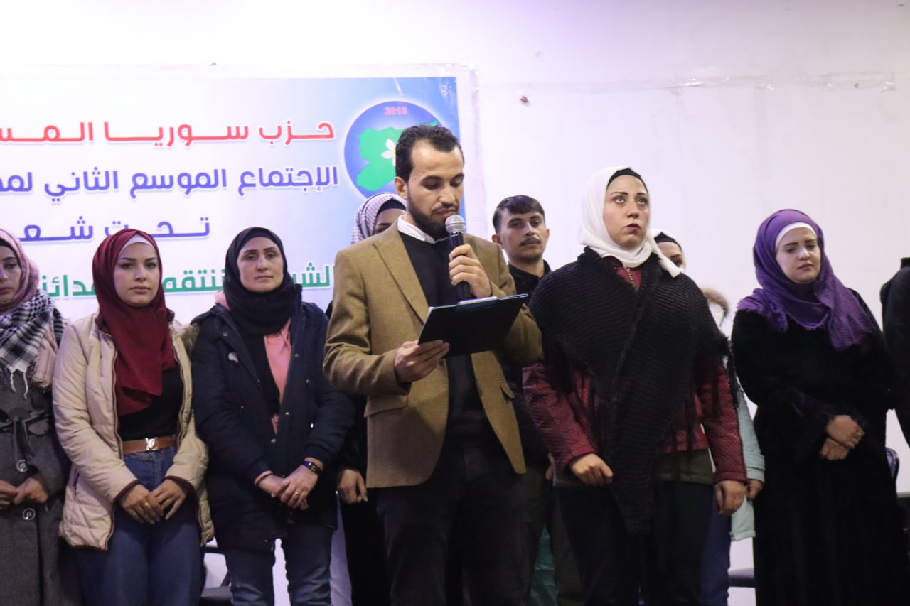 Piştî axaftina bi dawî bûn, endama Meclisa Giştî ya Ciwanan a Partiya Sûriya Pêşerojê Fude El Meşleb rapra sale ya meclisê ya du salan û rapora rêxistinî xwend.