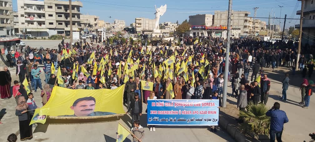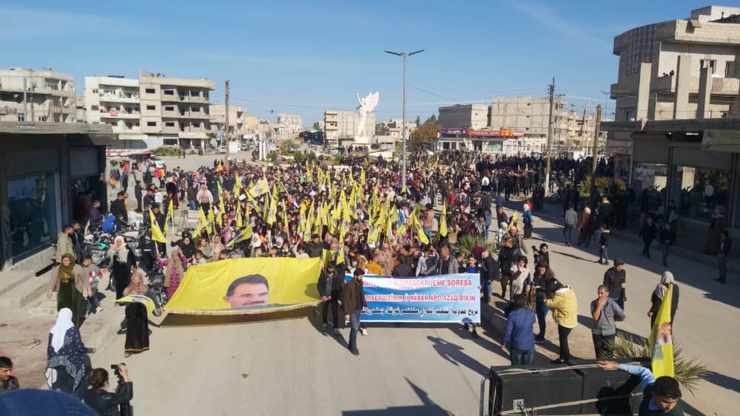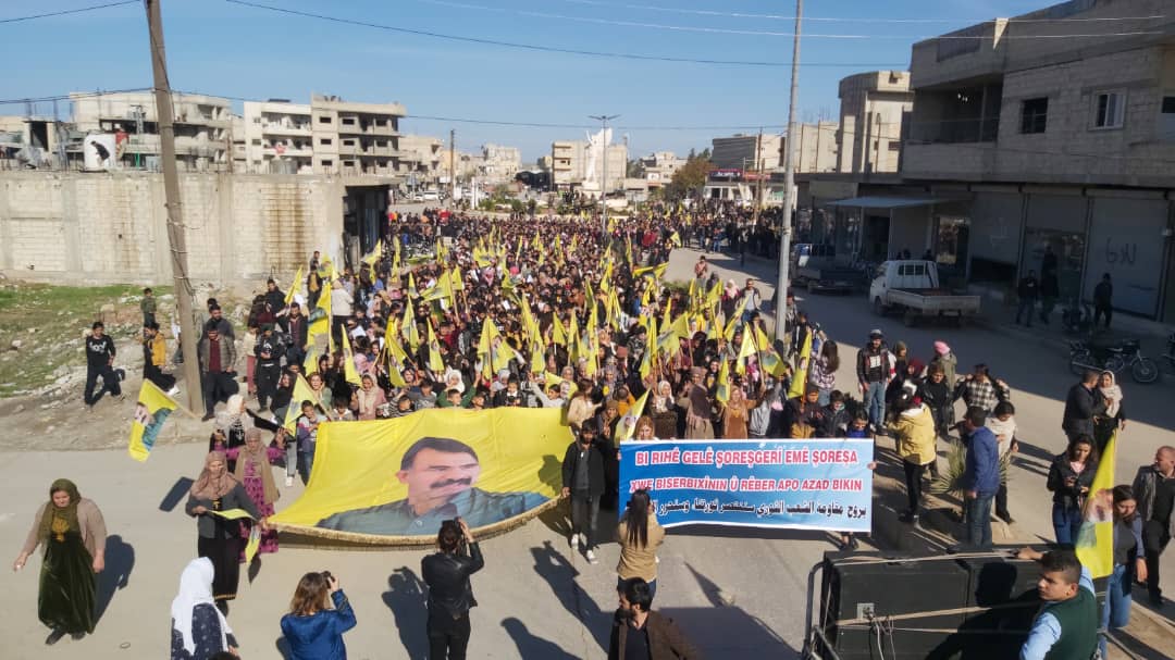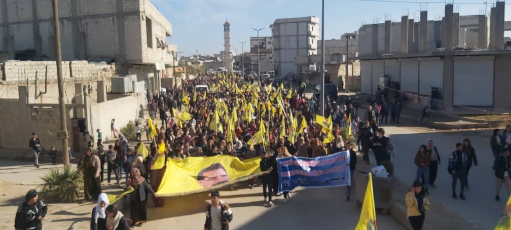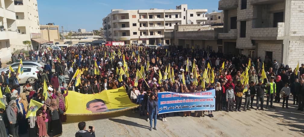 KOBANÊ- Şêniyên herêma Firatê ya Bakur-Rojhilatê Sûriyeyê, bi dirûşma “Bi ruhê gel ê şoreşgerî em ê şoreşa xwe bi ser bixînin û Rêber Apo azad bikin” daketin qadan.