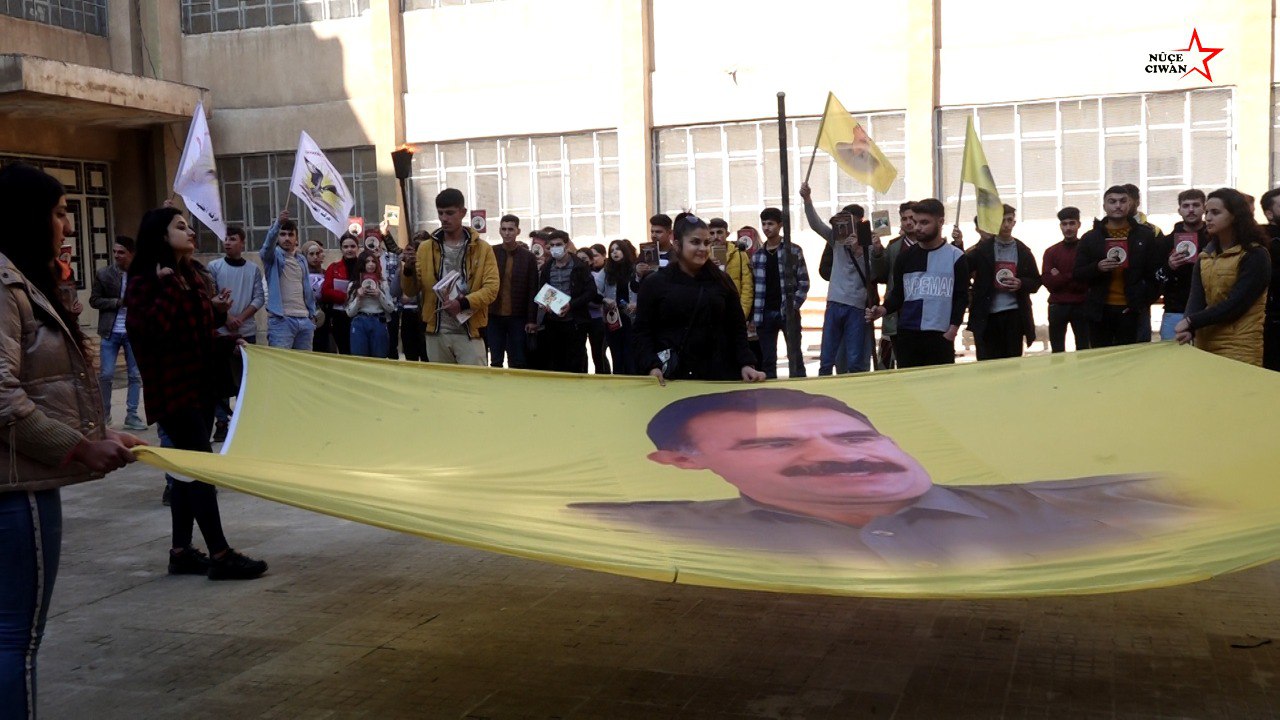 NAVENDA NÛÇEYAN- Tevgera Xwendekarên Demokratîk îro li Zanîngeha Rojava beşa Zanistên Xwezayî Teknolojî ji bo tecrîta li ser Rêberê Gelan Abdulah Ocalan çalakiyek darxistin.