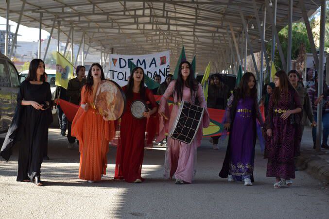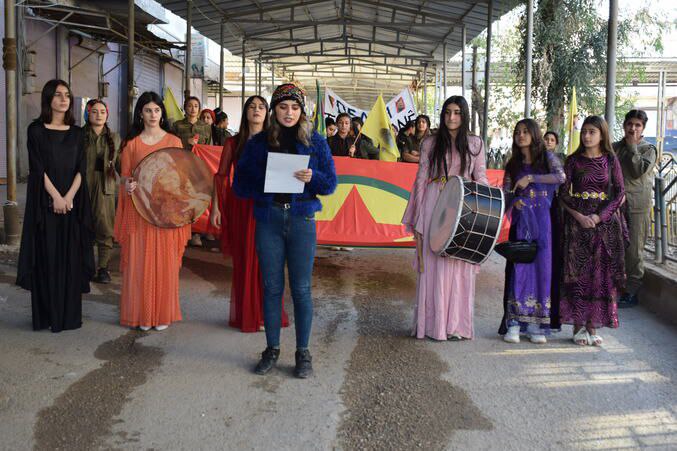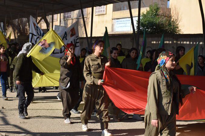 NAVENDA NÛÇEYAN- Îro Yekitiya Jinên Ciwan li navçeya Dêrikê ya girêdayî parêzgeha Qamişlo bi armanca piştgiriya helwesta Rêberê Gelan  Ocalan ku redkirina hevdîtina bi Komîteya Li Dijî Îşkenceyê (CPT) re di serdana xwe ya îlona borî de ji girtîgeha Îmraliyê re meşek li dar xist.