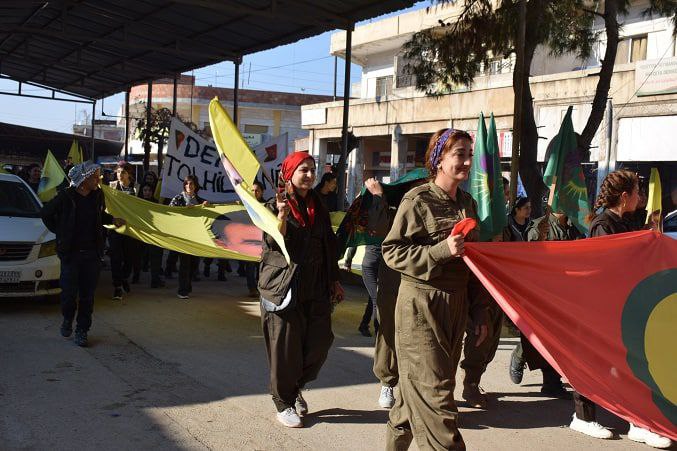 Îro Yekitiya Jinên Ciwan li navçeya Dêrikê ya girêdayî parêzgeha Qamişlo bi armanca piştgiriya helwesta Rêberê Gelan  Ocalan ku redkirina hevdîtina bi Komîteya Li Dijî Îşkenceyê (CPT) re di serdana xwe ya îlona borî de ji girtîgeha Îmraliyê re meşek li dar xist.