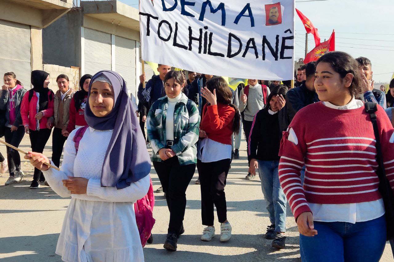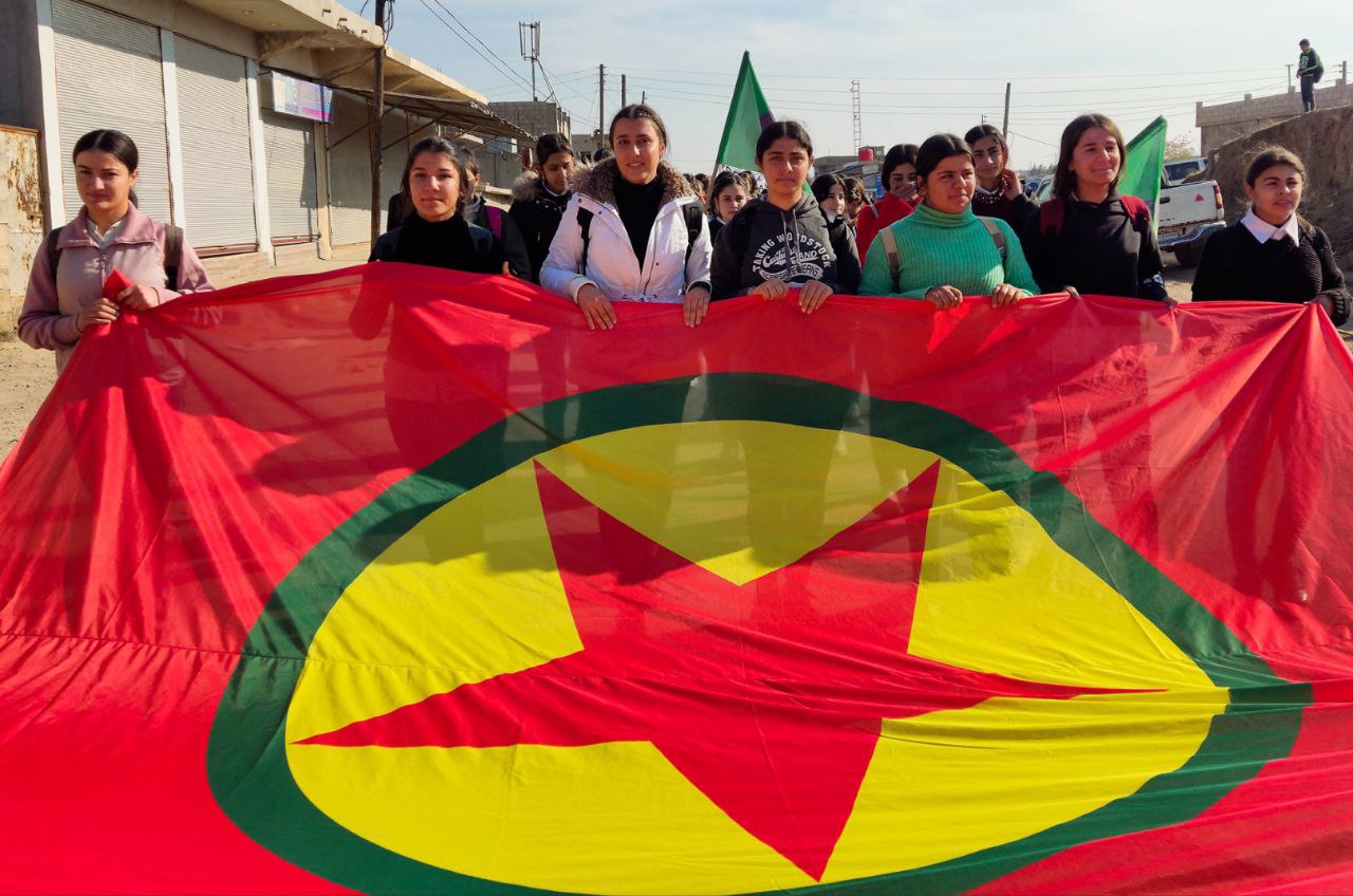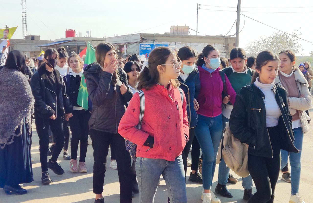 NAVENDA NÛÇEYAN- Îro Yekitiya Jinên Ciwan û Tevgera Ciwanên Şoreşger ên navçeya Xana serê ya girêdayî bajarê Dêrikê bi armanca tecrîta li ser Rêber Apo protesto meşek li dar xist.