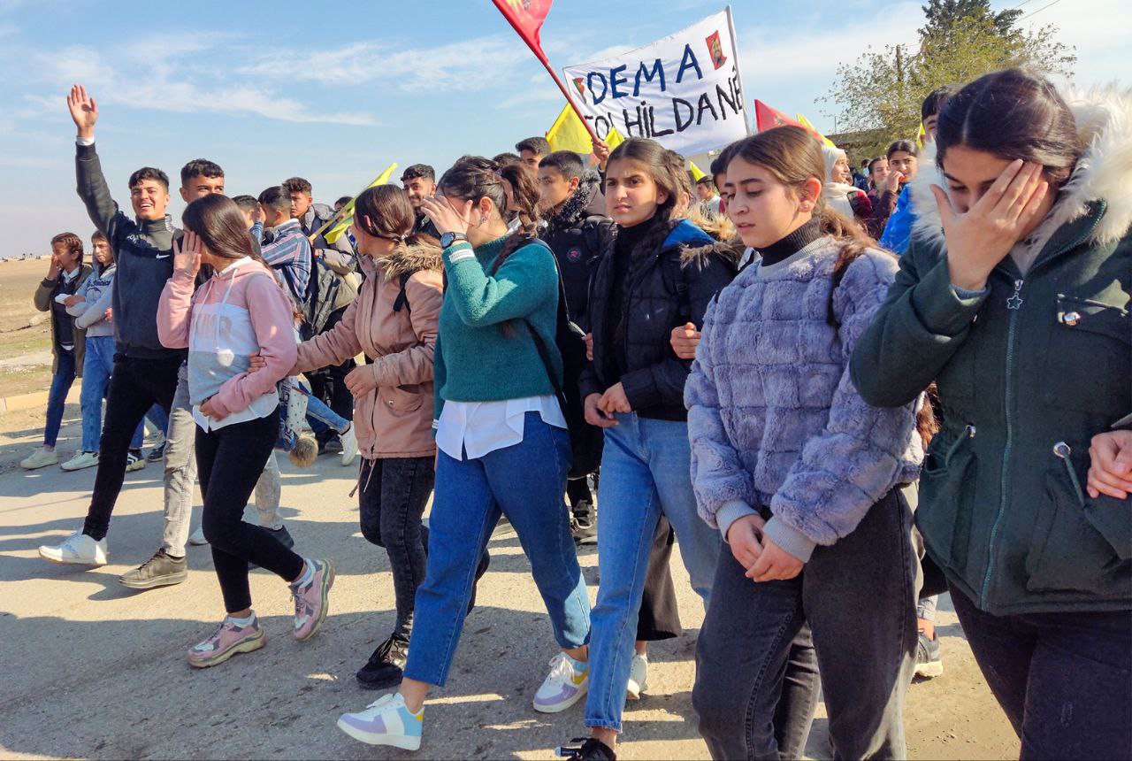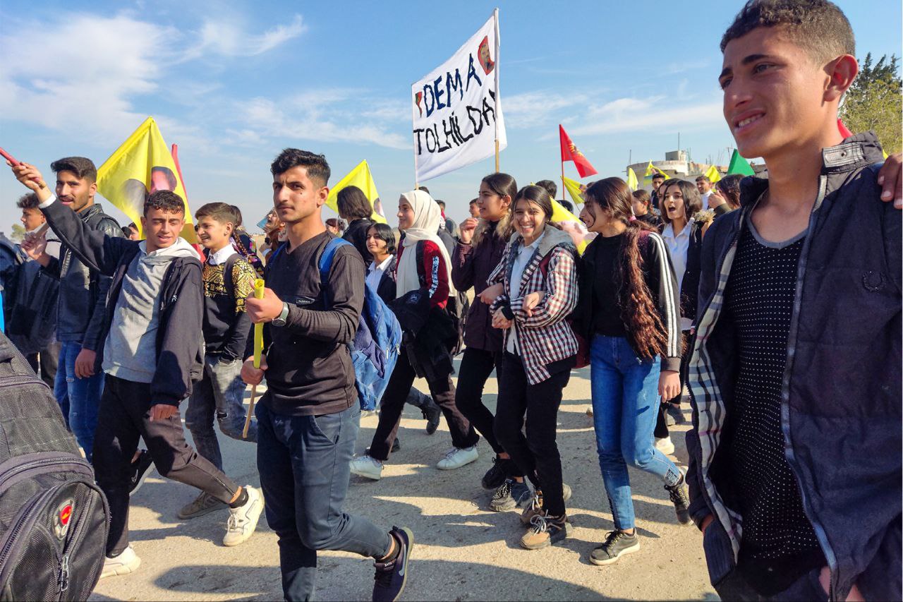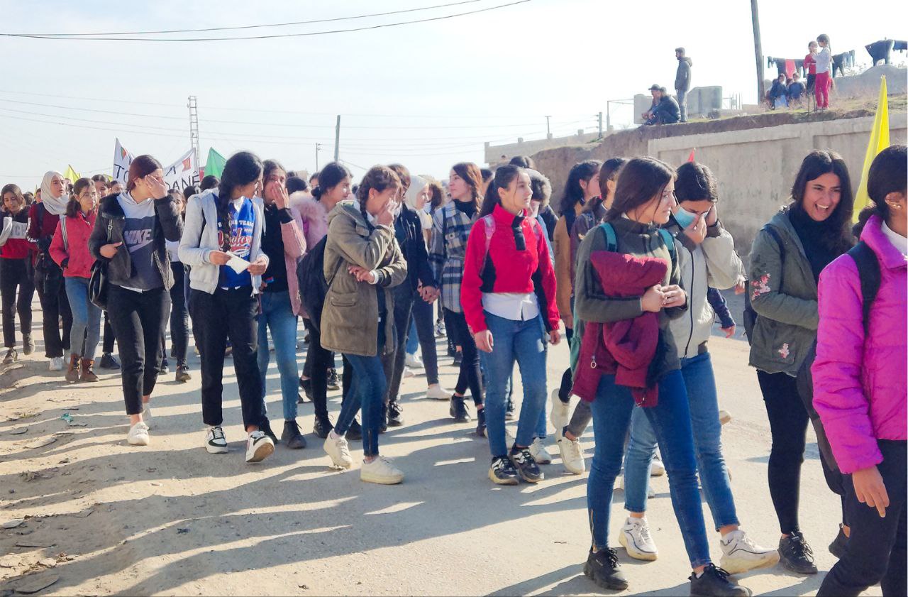 NAVENDA NÛÇEYAN- Îro Yekitiya Jinên Ciwan û Tevgera Ciwanên Şoreşger ên navçeya Xana serê ya girêdayî bajarê Dêrikê bi armanca tecrîta li ser Rêber Apo protesto meşek li dar xist.