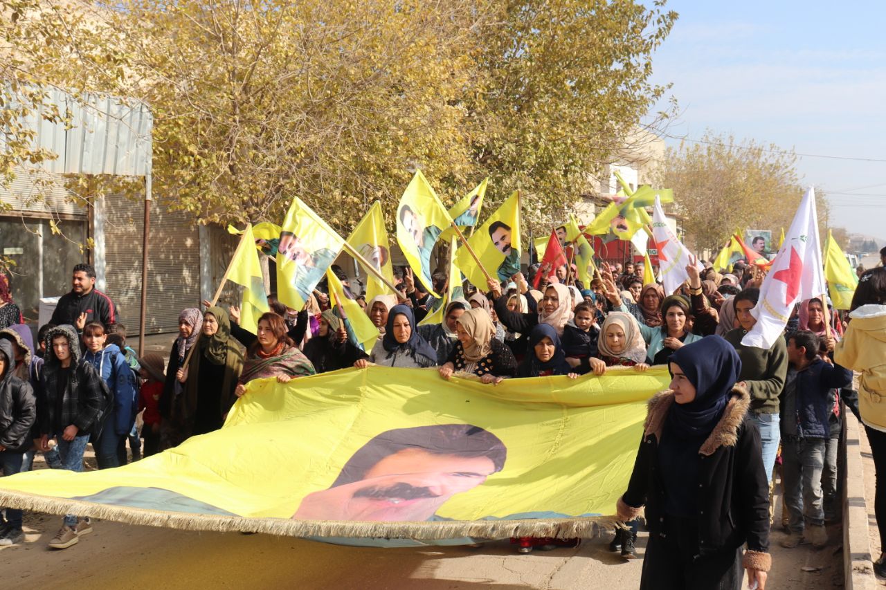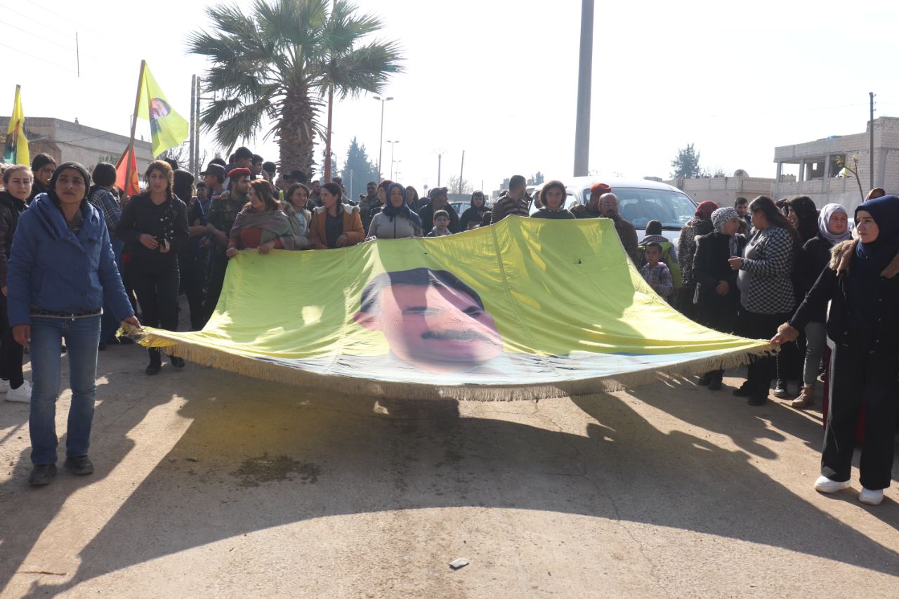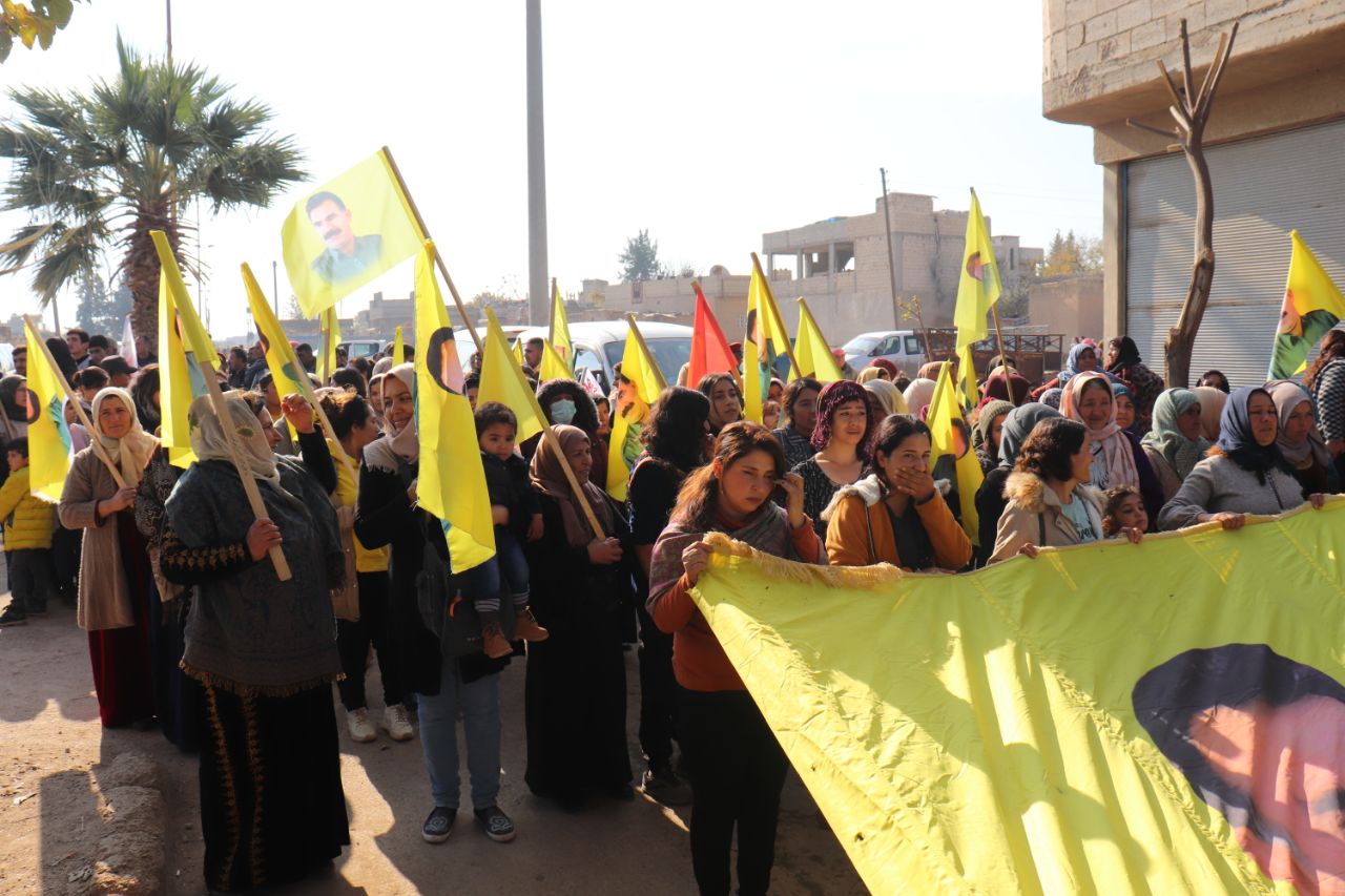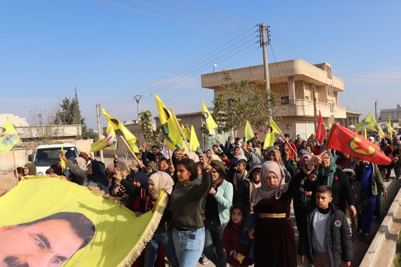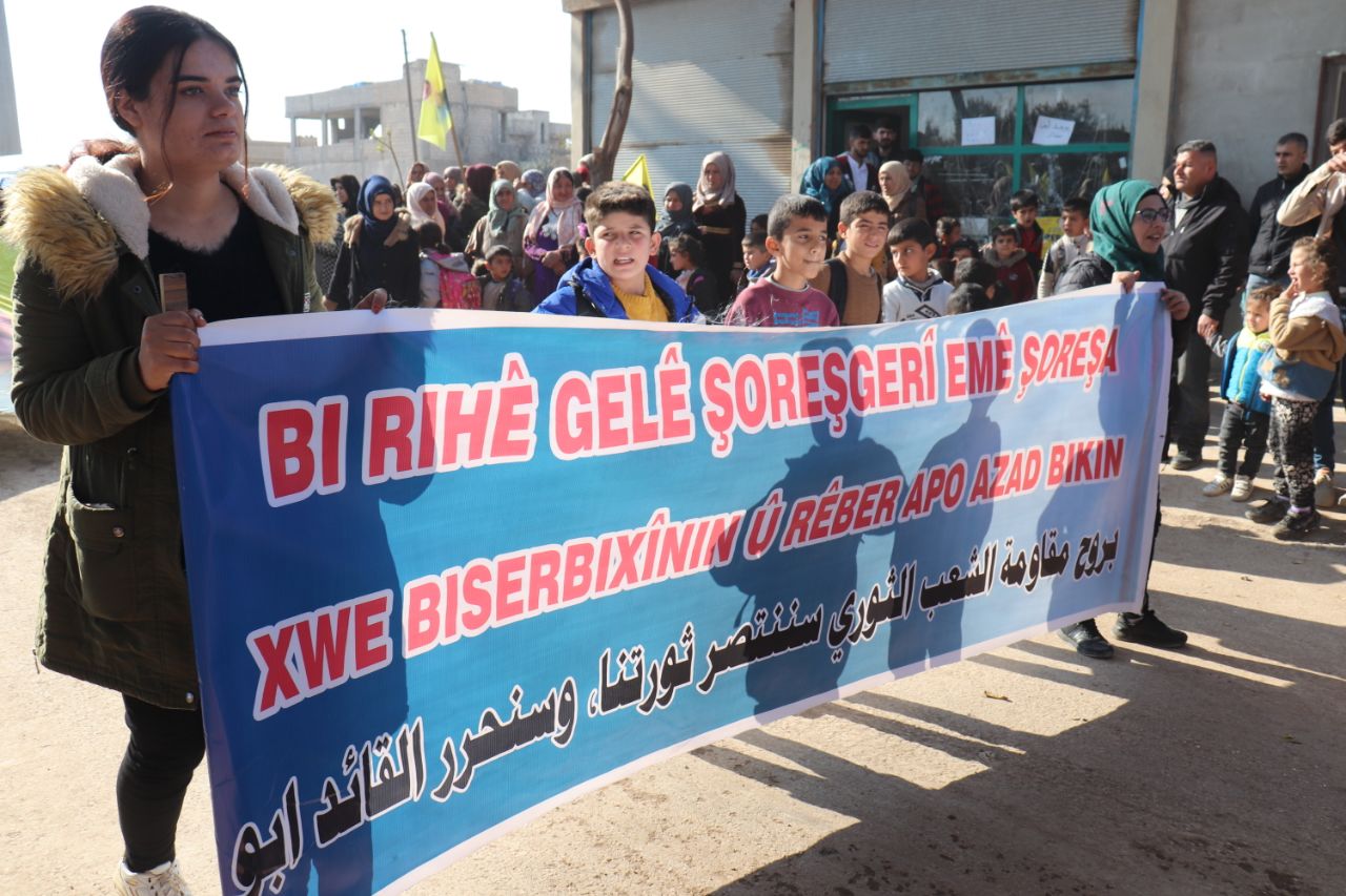 KOBANÊ- Îro li bajarê Kobanê navçeya Şêranê Tevgera Ciwanên Şoreşger û Yekitiya Jinên Ciwan li hemberî tecrîda girankirî liser Rêber Apo meşek lidarxistin.