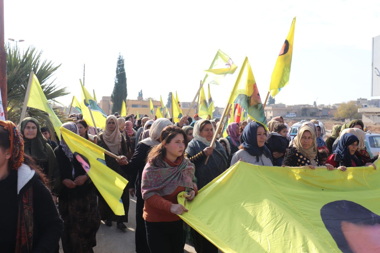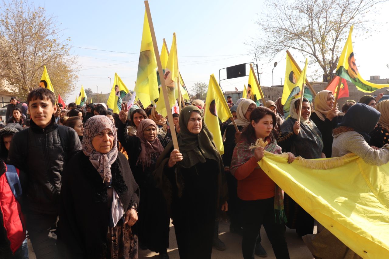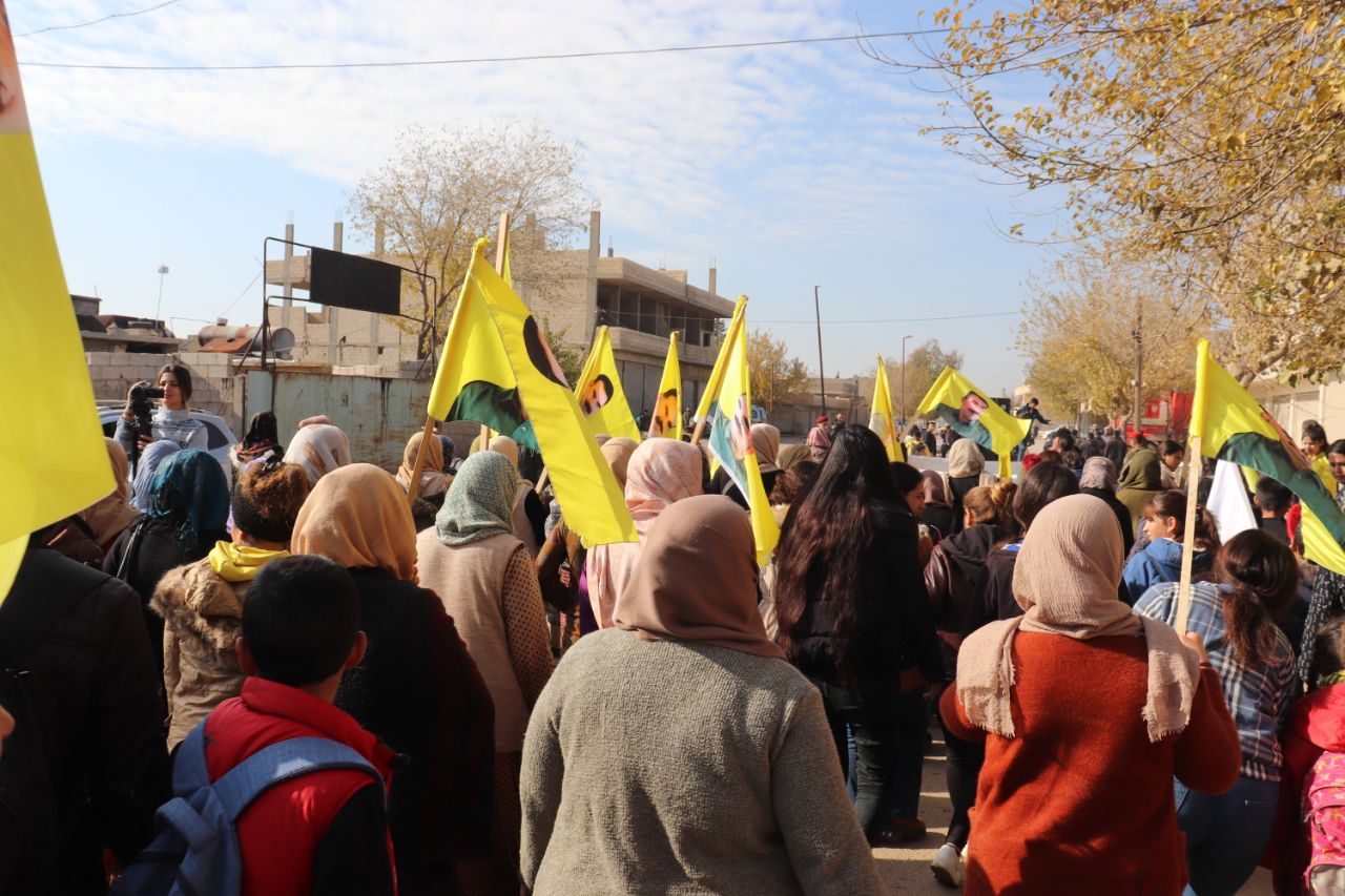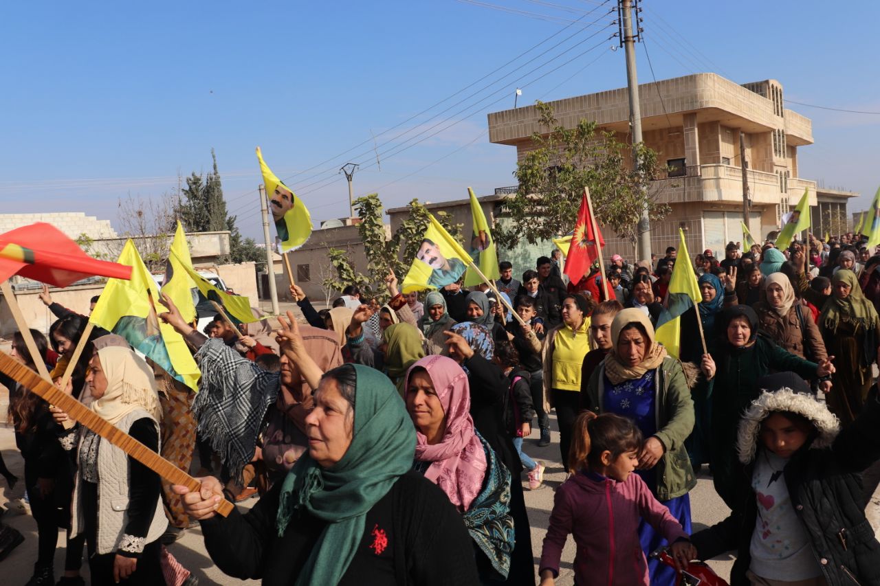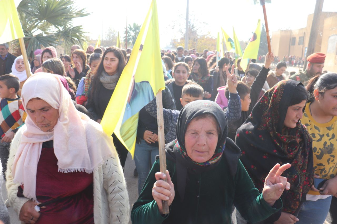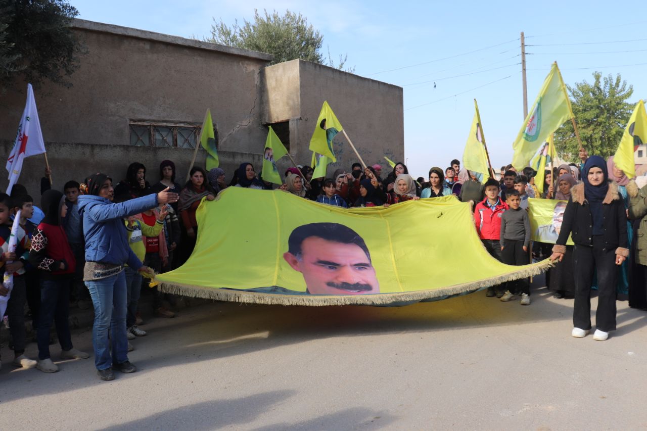 KOBANÊ- Îro li bajarê Kobanê navçeya Şêranê Tevgera Ciwanên Şoreşger û Yekitiya Jinên Ciwan li hemberî tecrîda girankirî liser Rêber Apo meşek lidarxistin.
