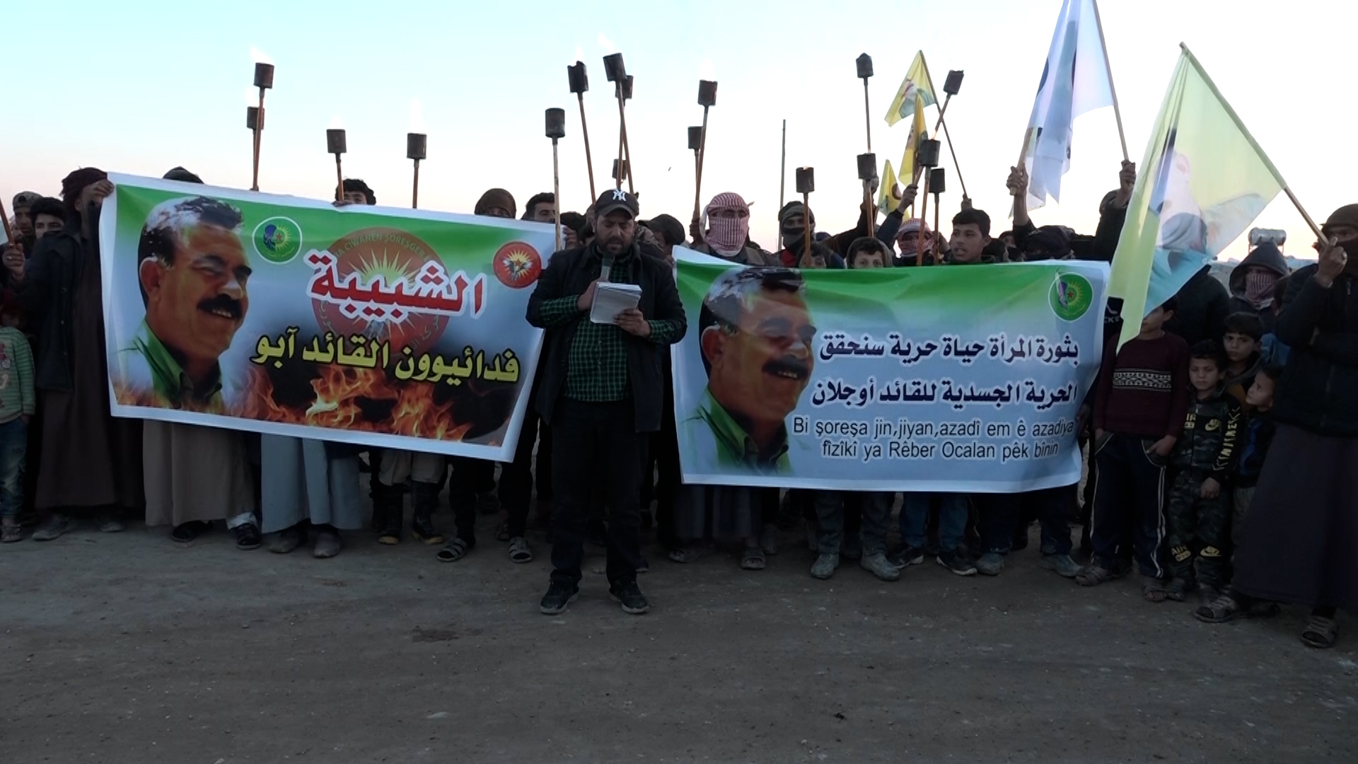 Tevgera Ciwanên Şoreşger ji bo azadiya Rêber Apo li Kampa Ebû Xeşeb a Dêra Zorê bi meşeke meşaleyî daxwaza azadiya fîzîkî ya Rêber Apo kirin.