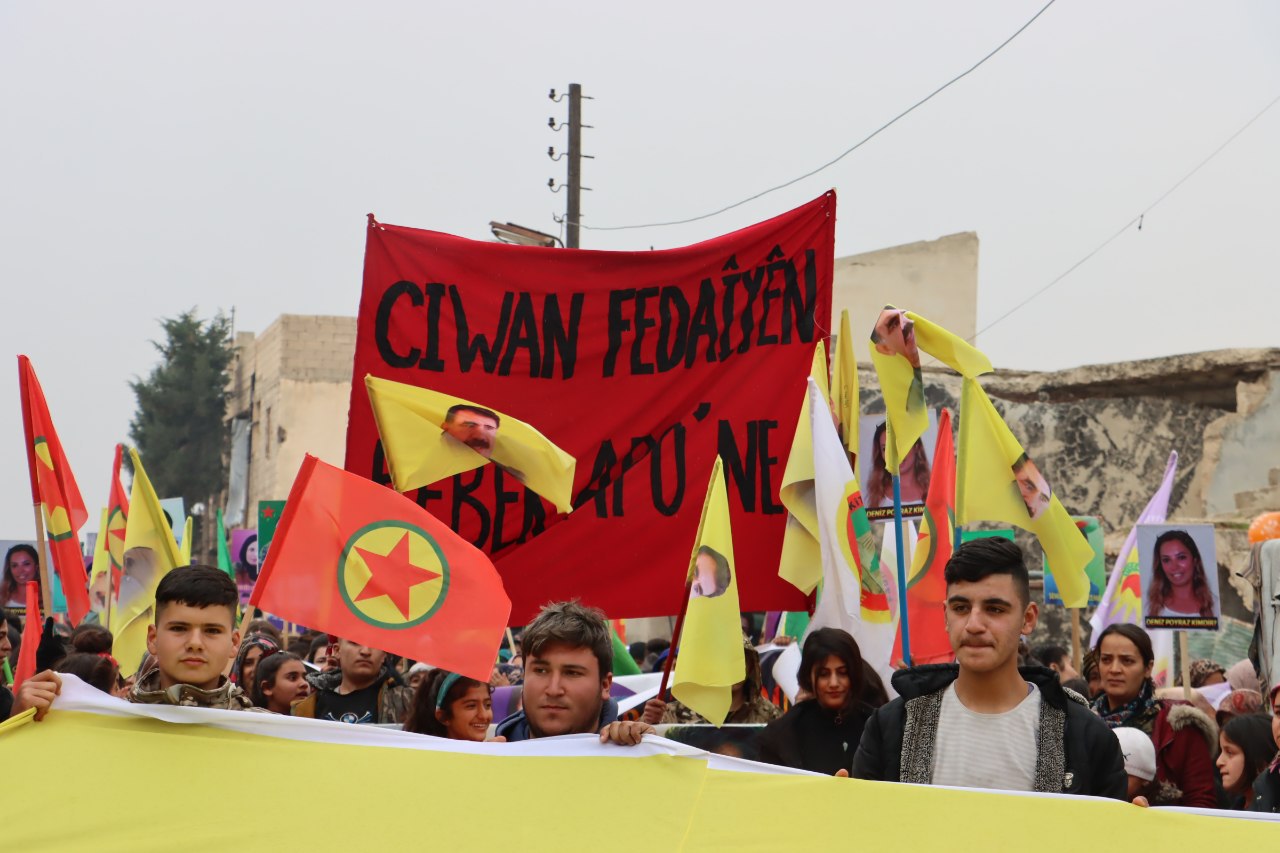 ŞEHBA- Tecrîda li dijî rêber Apo bi çalakiyan tê şermezarkirin. Tevgera Ciwanên Şoreşger a Sûriyê û Yekitiya Jinên Ciwan a herêma Efrînê li Til Rifetê bi meşekê tecrîd şermezar kir.