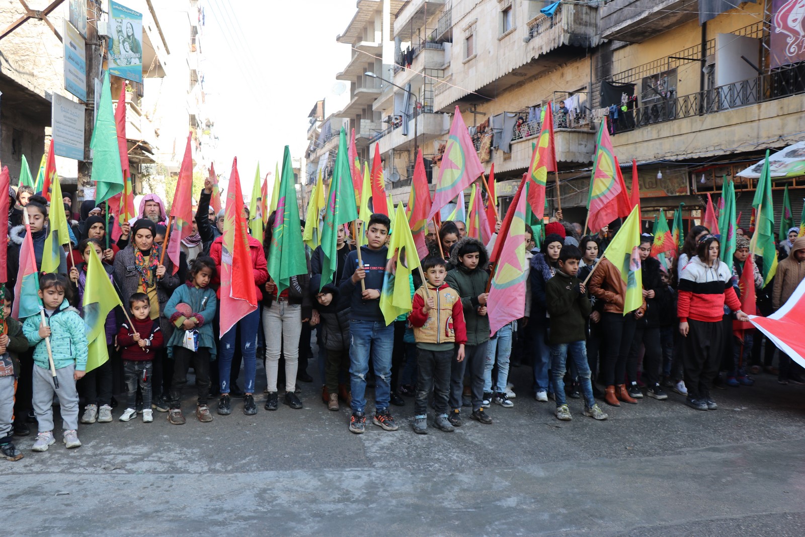 HELEB- Di xwepêşandana ku Tevgera Ciwanên Şoreşger a Sûriyê li dar xistiye de şêniyên taxa Şêxmeqsûdê, endamên saziyên sivîl û partiyên siyasî beşdar bûn.