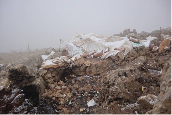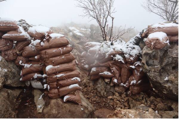 Piştî demeke kurt a ji meşa ji çeperên gerîla, em digihêjin çeperên ku artêşa Tirk li pey xwe hiştin. Destpêkê kozikên dagirkeran xuya dikin. Lê belê diyar e ku ji nişka ve xwe vekişandine, lewma tê dîtin ku tenê bi kêrê kon û kîsên ji axê çirandine.