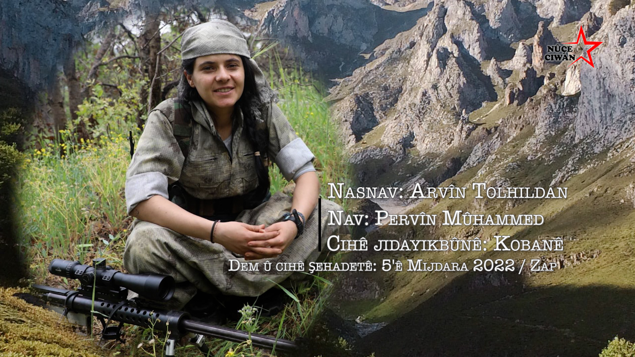 Hevrê Arvîn li Kobanê ku navenda berxwedana Şoreşa Azadiya Rojava bû û di encama şerê efsanewî yê li dijî çeteyên DAÎŞ’ê de veguherî xeta serkeftinê ya gelê me, ji dayik bû. Hevrê Arvîn weke jinek ciwan a Kurd a bi rûmet, li dijî êrîşên ku dixwest Şoreşa Azadiyê ya Rojava bifetîsîne û hêviyên bindestan ên zîndî bûne ji holê rabikin bêdeng nama û tevli nava refên têkoşînê bû. Hevrêya me ya ku di temenê xwe yê ciwan de ji bo pêşeroja azad a gelê me berpirsyariyên mezin girt li ser milê xwe, ji bo gelê me yê bindest li xaka xwe ya qedîm bibe xwedî jiyaneke azad, hemû nefesa xwe dide têkoşîna şoreşê. Hevrêya me ya ku di Şoreşa Azadiyê ya Rojava de bi awayek aktîf cih girt, di sala 2015’an de tev li nava refên Gerîlayên Azadiya Kurdistanê bû. Hevrêya me ya ku bi qilafeta xwe ya ciwan û dînamîk di demek herî kin de xwe li gorî şert û mercên çiyê lihevkir, bi tevlêbûna xwe ya bi coş bû çavkaniya moralê ji bo hemû hevrêyên xwe. Hevrêya me Arvîn bi hevrêyên xwe re li hemberî qirkirinên ku li Şengalê li dijî gelê me yê Êzidî dihat xwestin were pêşxistin derbasî Şengalê bû û li dijî çeteyên faşîst bi fedekarî li ber xwe da, piştre berê xwe da çiyayên Kurdistanê.Bi perwerdehiya leşkerî û bîrdozî ya ku dîtiye, di felsefeya Rêbertiyê û taktîkên gerîlayên serdema nû de pispor bûye.Weke milîtaneke YJA Starê ya xwedî tecrûbe çû herêma Zapê û bû yek ji hevrêya me ku yekemîn bersiv da êrîşa dagirkeriya dewleta Tirk a dagirker. Hevrêya me ya ku li gelek qadên Zapê gerîlatî kir, cihê xwe di nava tîmên bitevger de girt û di gelek çalakiyên ku derbeyên giran li dijmin hat xistin de cih girt. Hevrê Arvîn ku di pratîka xwe de şêwaza tîmên bitevger bi awayekî serkeftî nîşan dide, di eniyên berxwedanê de cih girt û tevlêbûnek aktîf nîşan da ye. Herî dawî hevrê Arvînê ku çû eniyên şer yêŞehîd Xursî yên li herêma Berxwedanê ya Sacayê, li dijî hemû êrîşên dewleta Tirk a dagirker bi hevrêyên xwe re têkoşînek dîrokî nîşan da.Di demek herî kîn de hevrê Arvîn pêşketinên mezin bi dest xistiye û bûye yek ji hevrêya me ya pêşeng ku ruhê serkeftinê yê serdema nû higirtiye. Hevrêya me timî ji bo pratîk û pêşxistina taktîkên serdema nû di nava hewldanan de bû, bi şêwazê xwe yê ku her firsendê dibîne vediguherîne çalakiyê û ruhê serketinê yê Apoyî jiyanî kiriye. Hevrê Arvîn ji bo azadiya gelê me bênavber xebat kiriye, li her qadê ked daye û di çalakiyên bêhejmar de cih girtiye, derbên giran li artêşa Tirk a dagirker û faşîst xistiye, mîrateyeke mezin a têkoşînê, jiyana xwe ya milîtanî, şerê fedaî û kesayeta xwe ya berxwedêr ji hevrêyên me re hiştiye. Hevrê Arvîn ya ku bihevrêyên xwe re di encama êrîşa hovane ya bi çekên kîmyewî ya ji aliyê artêşa Tirk a qirker ve hat kirin de şehîd bû, wê bi biryardarî û vîna xwe ya bênavber rêya têkoşîna me ronî bike.