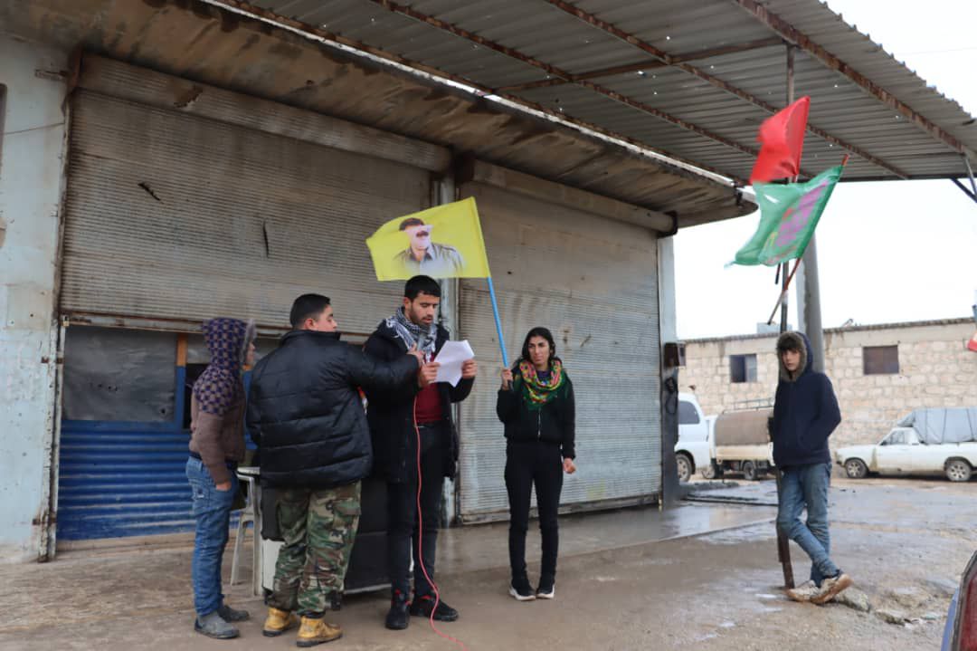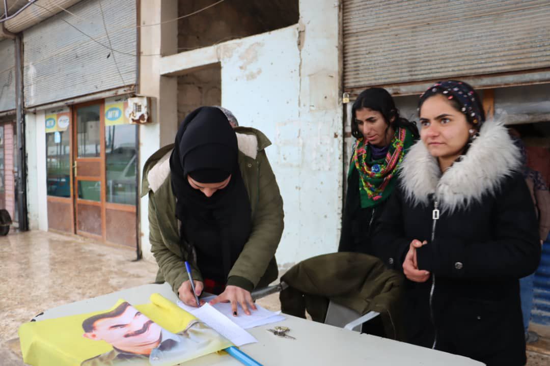 ŞEHBA – Îro endamen Yekîtiya Jinên Ciwan û Tevgera Ciwanên Şoreşger li Fafînê çalakî li dar xistin. Ciwanan û jinên ciwan li herema Bakur û Rojhilatê Sûrî dijî tecrîda girankirî ya liser Rêber APO, hemleya îmzê komkirine despê kirin. Ciwan û jinên ciwan li Şehbayê tevlî hemleyê dibin û li tax û gundên herema Şehbayê îmze kom dikin. Îro endamen Yekîtiya Jinên Ciwan û Tevgera Ciwanên Şoreşger li Fafîne li tax, gund, li pêşiya komînê û xestê îmzê kom kir. Gelê Şehbayê, jin, xort, kal, pîr û ciwanên hemû ji bo azadiya Rêber APO îmzê xwe avetîn.