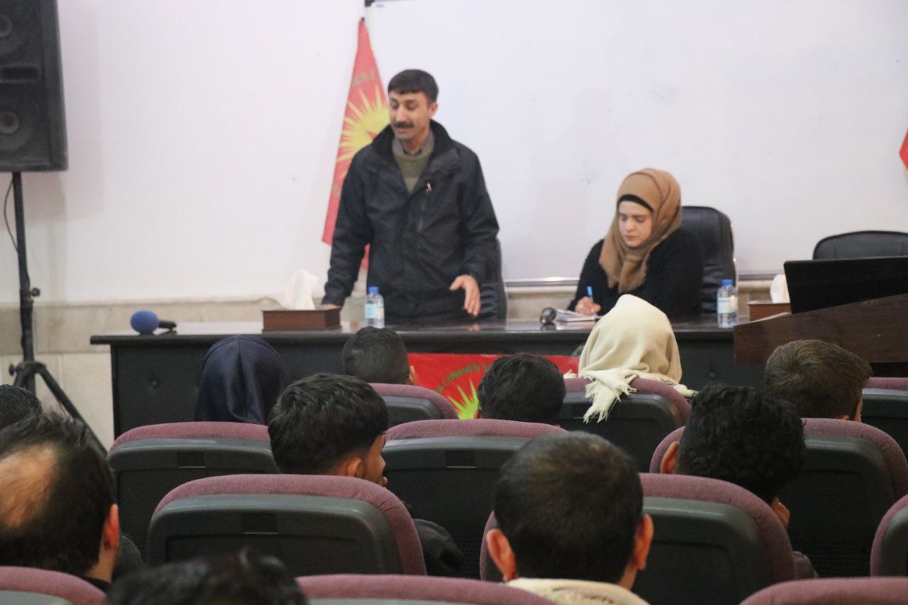 REQA- Endamên Tevgera Ciwanên Şoreşge a Sûriyê, Yekitiya Jinên Ciwan a Reqa, endamên Navenda Giştî ya Meclisa Ciwanan a Partiya Sûriya Pêşerojê tev li panelê bûn.