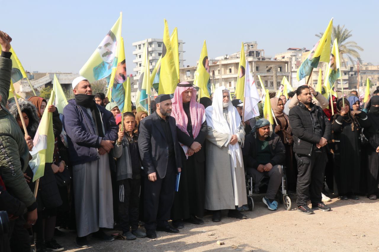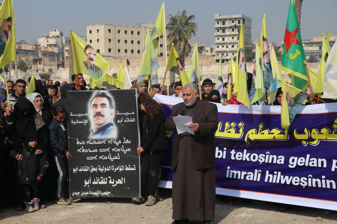 REQA-Li Reqayê şênî, rûspî û serokeşîrên bajêr, endamên saziyên sivîl Tevgera Ciwanên Şoreşger ên Reqayê derketin xwepêşandanê û banga azadiya fîzîkî ya rêber Apo kir.