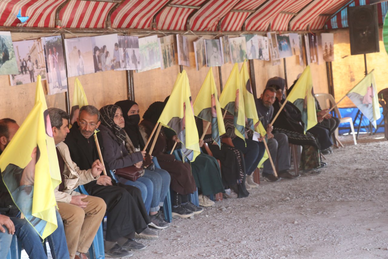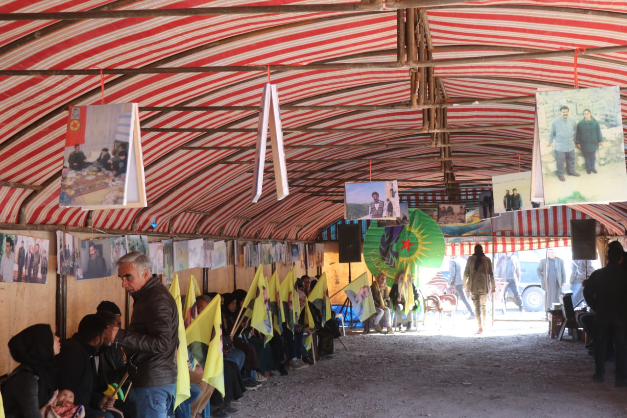 Ciwanan bi dirûşma ‘Ciwan Fedayê Rêber Apo ne’ kon danîn û pêşangehek ji wêneyên Rêber li qadê vekirin.