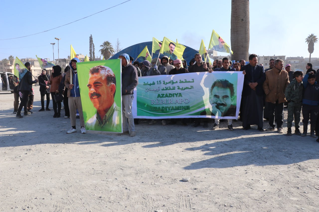 REQA- Yekîtiya Jinên Ciwan a Reqayê li dijî Komploya Navneteweyî ya 15’ê Sibata 1999’an a li ser Rêber Apo hatibû destpêkirin û dîl girtin, li pêşiya Meclîsa Giştî ya Reqa çalakiya kon dan destpêkirin.