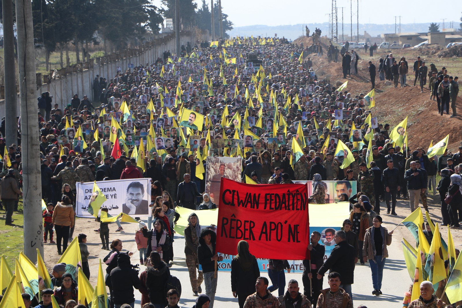 ŞEHBA- Bi deh hezaran koçberên Efrînê û şêniyên Şehbayê bi dirûşma “Êdî bes e tecrîd, înkar û îxanet, dem dema azadî û hilweşandina Komploya 15′ê Sibatê ye” meşeke girseyî li Şehbayê ji bo şermezarkirina Komploya Navneteweyî ya li dijî Rêber Apo şermezar kir.