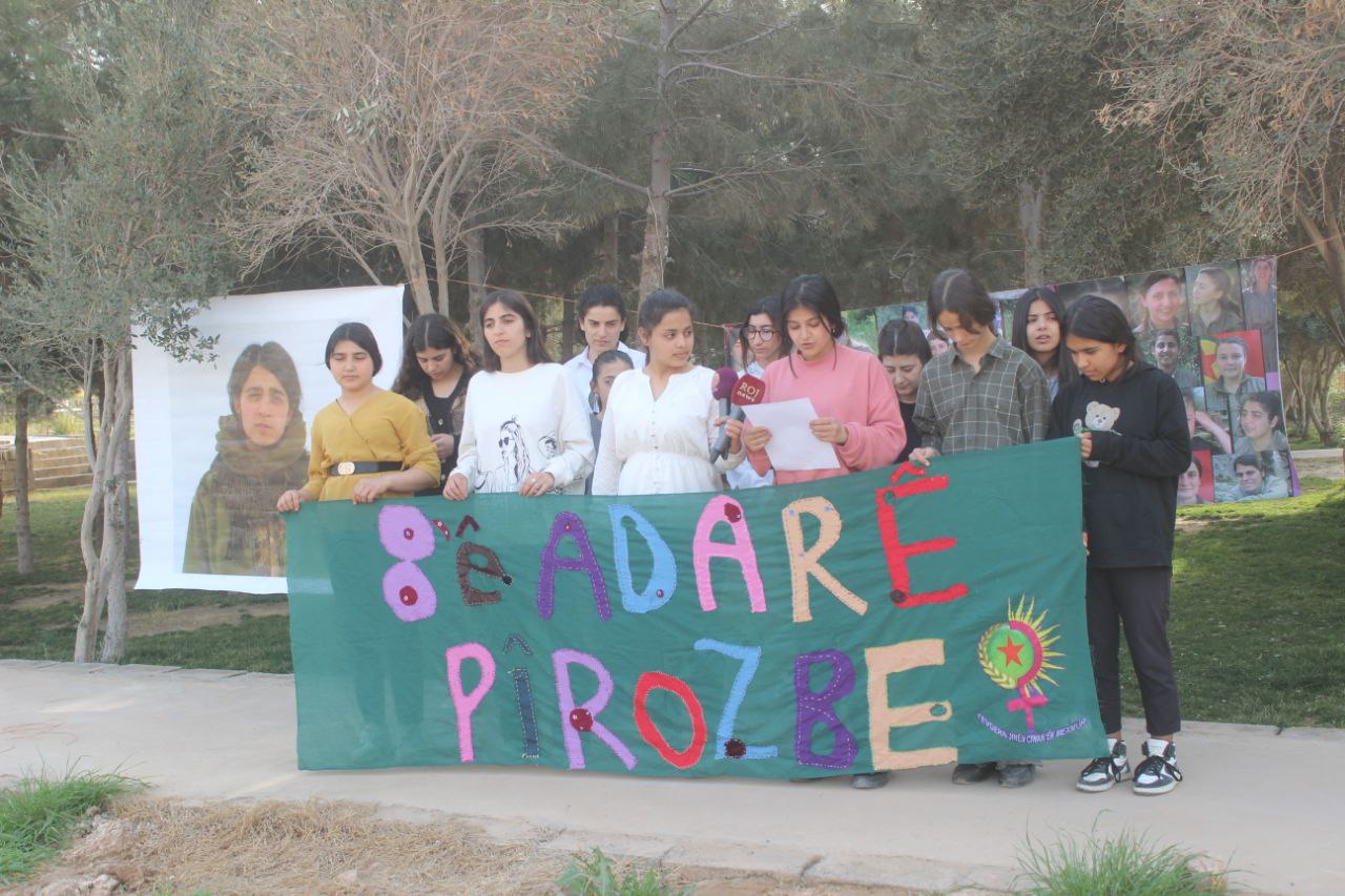 Fikir û ramanên azadiyê yên Rêberê APO belavî hemû cîhanê bûye. Îro di bin silogana jin jiyan azadî de li her derê cîhanê jinên ciwan xwe bi rêxistin dikin û ji bo mafê xwe tekoşîn dikin. Keda Rêber APO ji bo azadiya jin û pêşxistina jina kurd pir mezin û bi wate ye. ev 25 salin Rêber APO di bin sîstema îşkence û tecrîda mutlaq de ye lê fikir û ramanên Rêbertî her tim ji bo me çavkaniya azadiyê ye ji bo wê jî em wekî jin Rêber APO Rêberê xwe jinan dibînin. Em wekî jinên ku em li ser fikrinên Rêbertî xwe avadikin roja 8 adarê roja jinên kedkar a cîhanê em li Rêberê xwe Rêber APO pîroz dikin û em dibejin wekî ku Serokatî pênase kiriye” pirojeya min a jin a nîvço mayîye” emê bi tekoşîna xwe wê nîvço mayinê temam bikin û bigêhijin serkeftinê li ser vî esasî Em wekî tevgera jinên ciwanên mexmurê bi paradîgmaya azadiya jin ya ku Rêberê me pêşxistiye me xwe nas kir û li ser wî esasî ji bo hevjiyanek azad emê heya dawî tekoşîn bikin bi silogana ku Rêbertî derxist û niha li her deverê cîhanê belav buye emê xwe xwedî bikin û mezin bikin. Dîsa dubarê em 8 Adarê li hemî jinan pîroz dikin û em dibejin JIN JÎYAN AZADÎ
