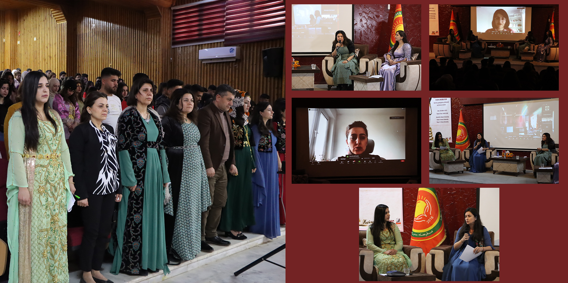 Hevseroka Hemahengiya Zanîngehên Bakur û Rojhilatê Sûriyeyê Rohan Mistefa axivî û got: “Ev zêdetirî 10 salan li Rojava şoreşeke heye, bi şoreşa jin hat naskirin, ji ber jin di hemû qadan de cih girt û bû sembola têkoşînê. Ew jin tecrubeya têkoşîna jina azad ji xwe re kir bingeh. Serhildana “Jin, Jiyan, Azadî” berdewamiya têkoşîna jinên Bakur û Rojhilatê Sûriyeyê ye.