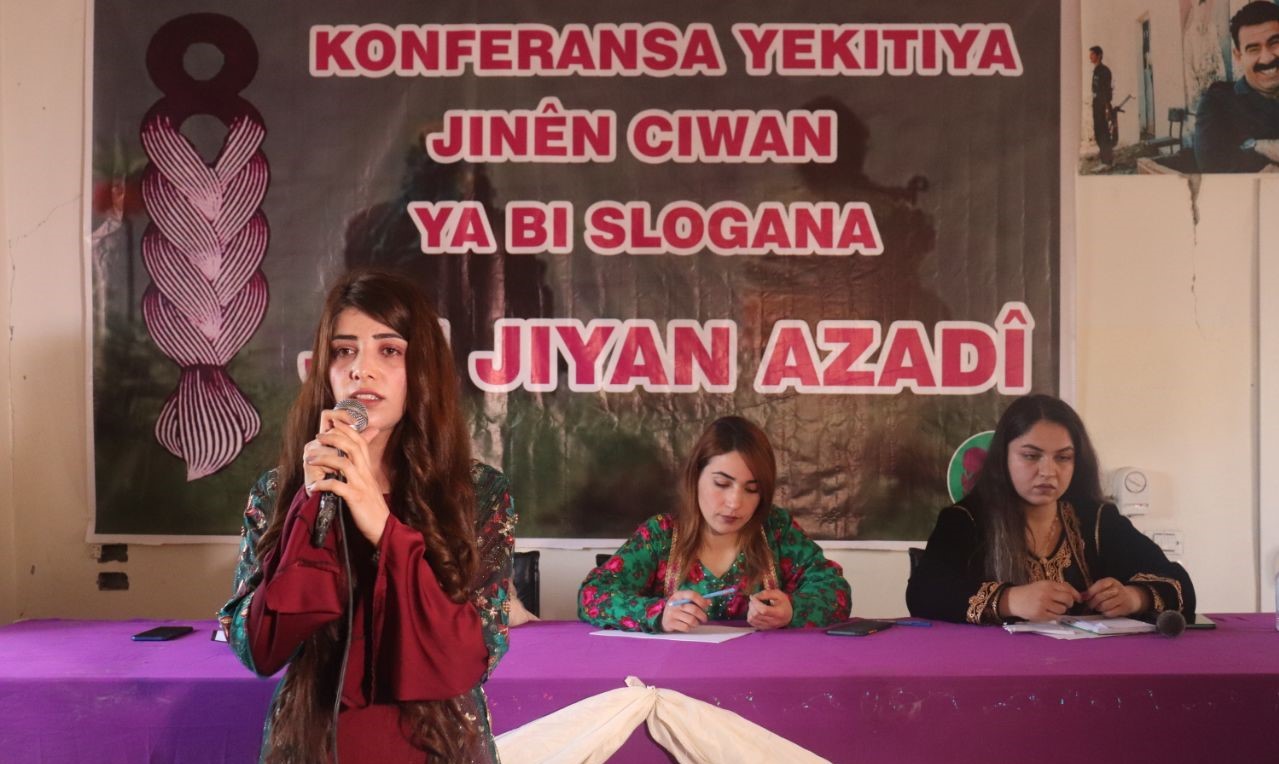 Kobanê – Bi boneya 8 ê Adar ê Roja Jinên Kedkar a Cîhanê Jinên Ciwan bi diruşmeya “Jin Jiyan Azadî li Bajarê Kobanê Konferans lidar xist.