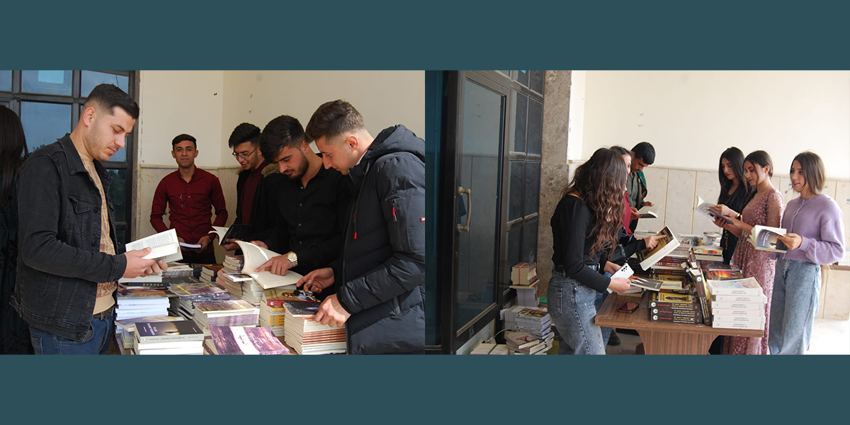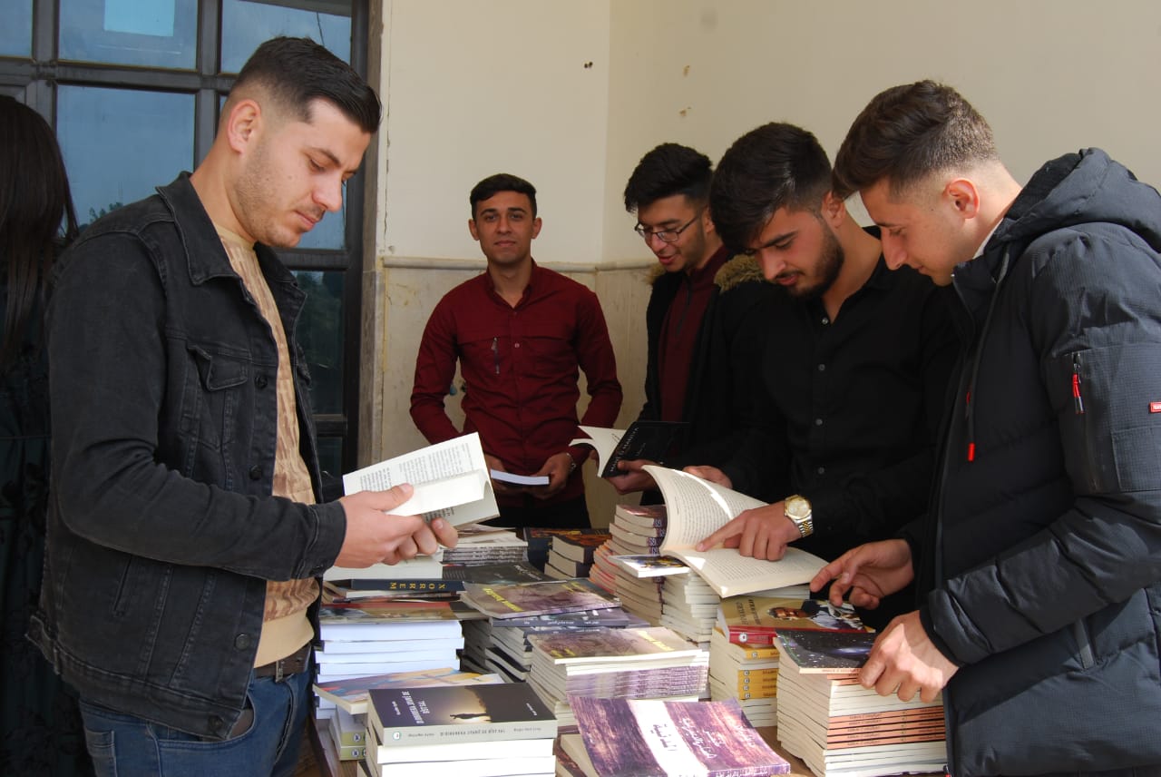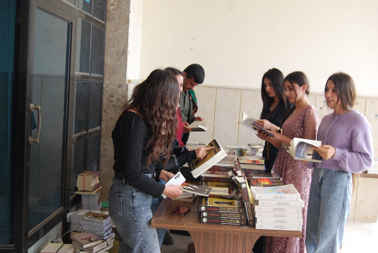 RIMÊLAN – Îro berî nîvroj li zanîngeha beşa petrol û petrolkîmya a Rimêlan di pêşengtîya Yekîtîya Xwendekar a Rimêlan bi armanca kûrbûyîna fikira xwendekaran û fêmkirina rastîya xwe pêşengeh a pirtûkan hat lidarxistin. Li peşangehê bi hezaran pirtûkên îdeolojîk, felsefîk, roman, çîrok, helbest, bîrnanînên gerîla hat belav kirin.