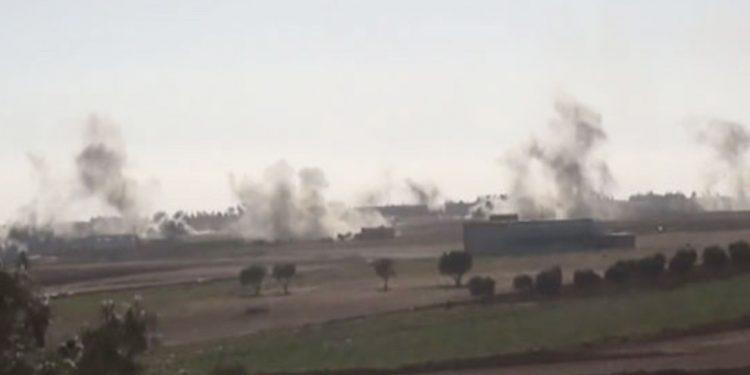 NAVENDA NÛÇEYAN – Gundên Seyda û Cideyda yên Eyn Îsa, wargeha kevin û rêya M4 ji aliyê dewleta Tirk a dagirker û çeteyên wê ve bi topên hawan û obusan tên topbarankirin.