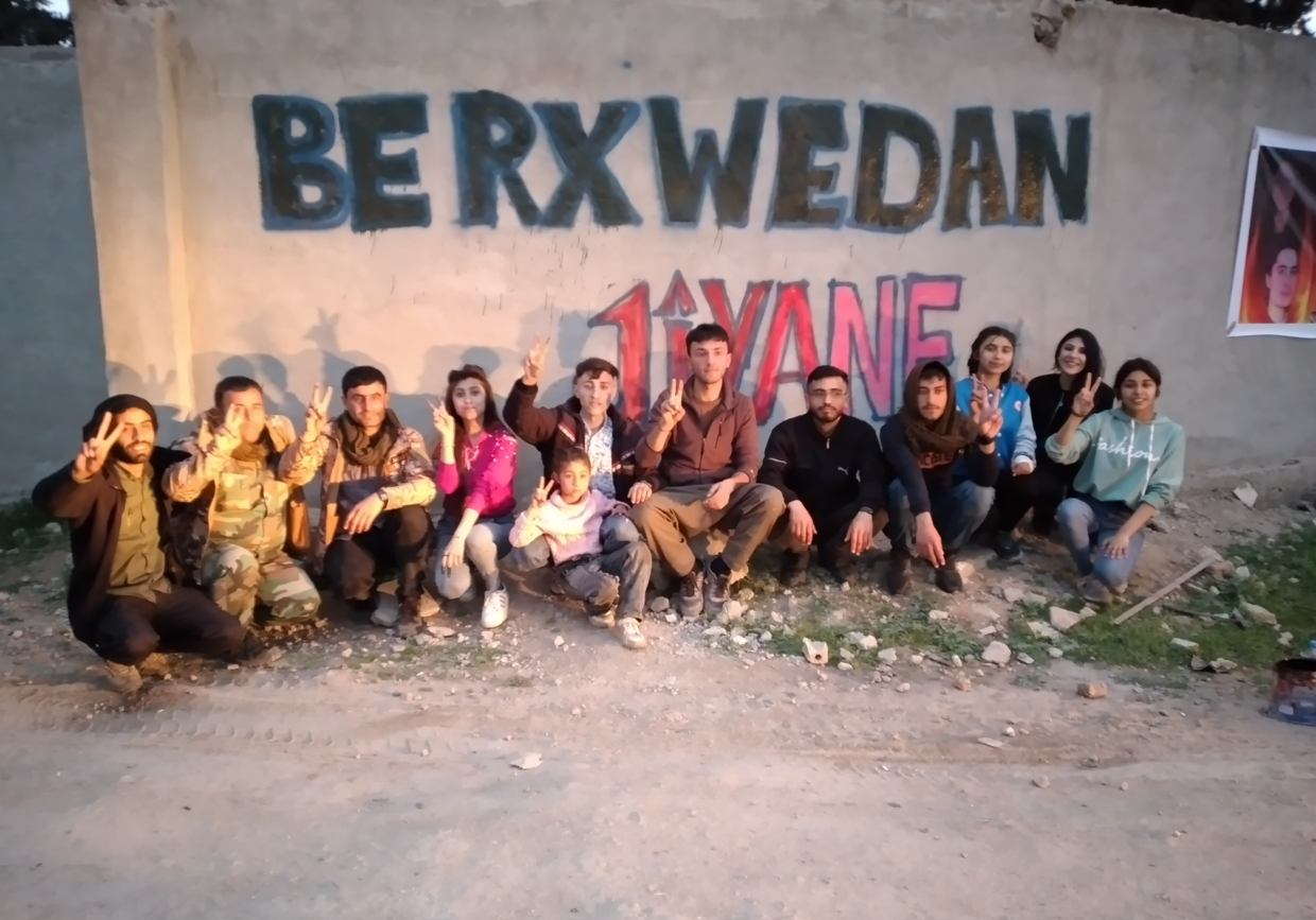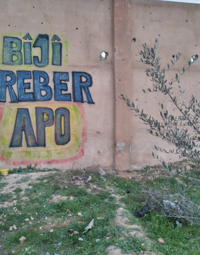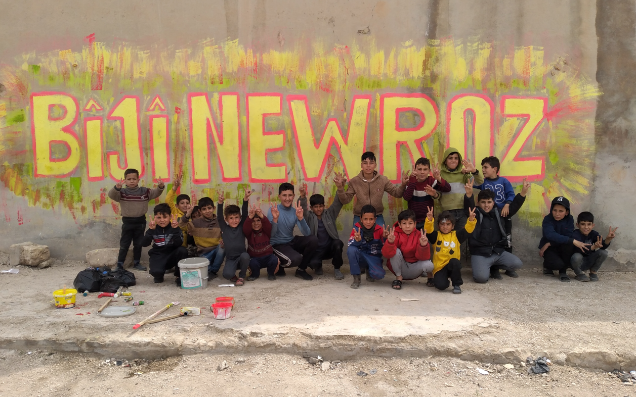 ŞEHBA- Ciwanên Şoreşger bi nivîsên ‘Bijî Newroz’, ‘Newroz Rêber Apo Pîroz be û ‘Newroza We Pîroz Be’ ên li ser dîwarên navçeya Ehdas a Kantona Şehbayê Newroza xelkê herêmê pîroz kirin.