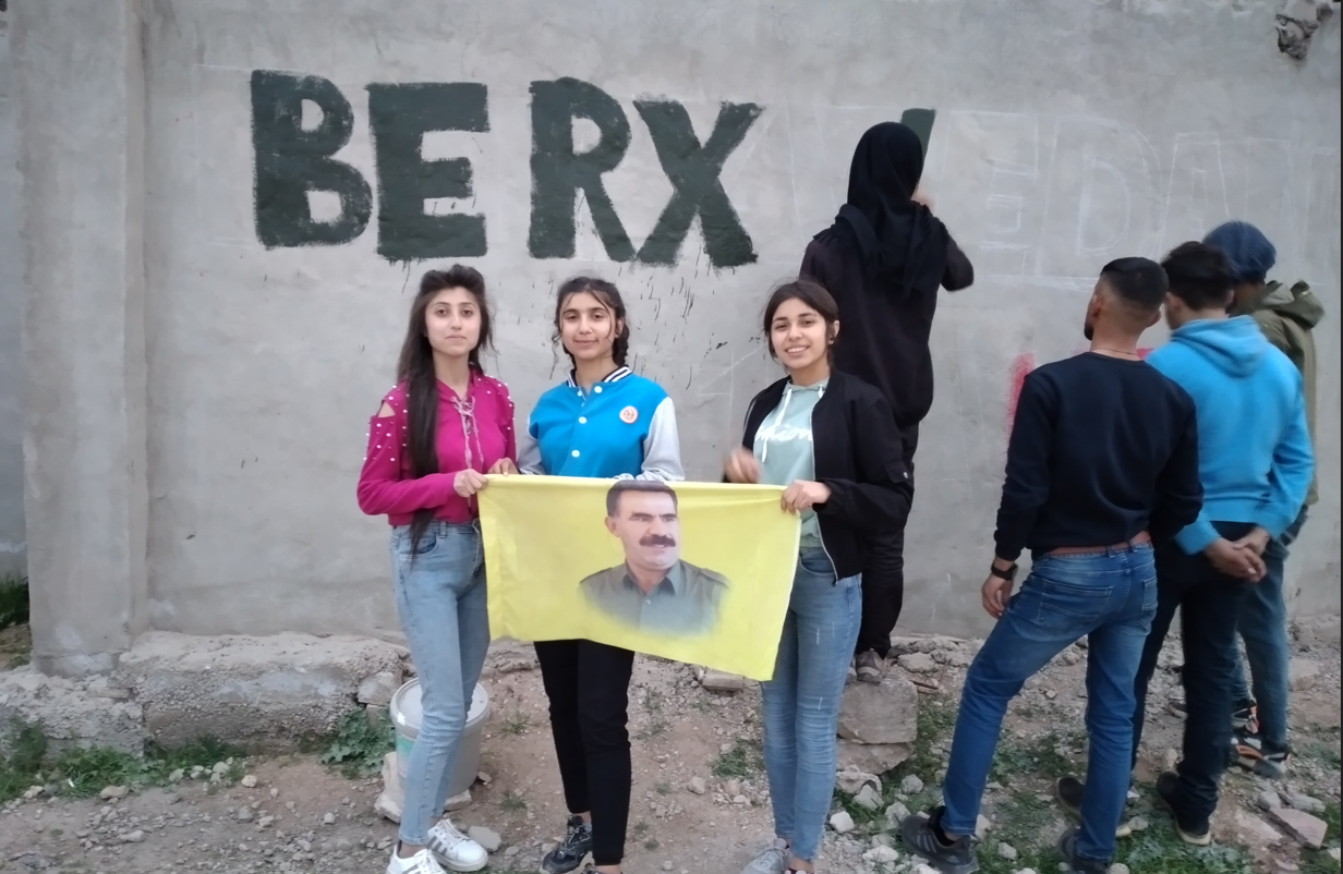 Her wiha ciwanan li ser dîwaran ‘Bijî Newroz’, ‘Berxwedan Jiyan e,’ ‘Bijî PKK’ jî bi renga reng nivîsandin.