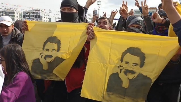 Ciwanên ku ji bo azadiya fîzîkî ya Rêber APO li qada Newrozê meşiyan posterên Rêber APO rakirin û dirûşma “Silav silav ji Îmraliyê re hezar silav ” qîriyan.