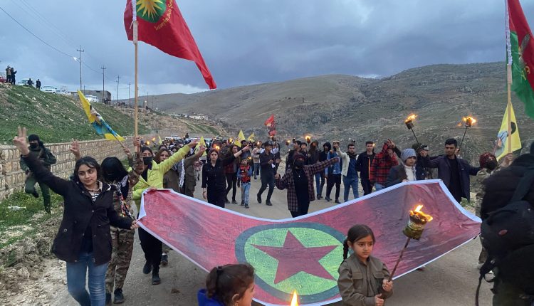 Şengal – Li Şengalê ciwanan bi meşek meşaleyî Cejna Newrozê pîrozkirin, ciwana ragihandin ku wê ti kes nekaribe li ber têkoşîn û berxwedana wan ya ji bo azadiya Rêber Apo bigre.