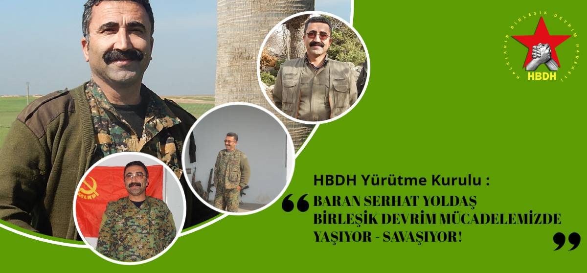 Dilsoziya bi hevrê Baran Serhat û hemû şehîdên me, erkên şoreşgerî bi fedayîbûneke mezin ve girêdayî ye. Bîranîna wan tê wateya pêşxistina têkoşîna şoreşgerî ya li dijî faşîzm û pergala kapîtalîst. Weke HBDH’ê em ê ji bajaran heta çiyayan, ji zindanan heta kuçeyan hesab ji desthilatdariya faşîst bipirsin, em ê hevrê Baran Serhat di têkoşîna xwe de zindî bihêlin û li ser şopa nemiran em ê meşa xwe ya şoreşgerî ya yekbûyî bi serketinê tacîdar bikin.”