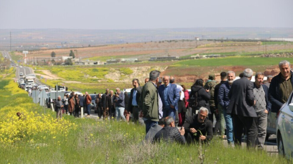 Ji gelek bajarên Kurdistan û Tirkiyeyê bi sedan welatî tev li meşê bûn. Girse li gel hemû astengiyan jî li ser Xaçerêya Payamliyê ya li ser rêbeja Riha-Dîlokê gihiştin hev û daxuyaniyê dan. Piştî daxuyaniyê jî ber bi Amarayê ve ketin rê. Girseya ku bi konvoyê xwestin biçin Amarayê, di têketina çoltara Taxa Yanaloba ya navçeya Pirsûsê ji aliyê cendirmeyan ve hatin rawestandin. Cendirmeyan, bi hinceta qedexeya walîtiyê destûr neda ku girse derbasî Amarayê bibe. Li ser vê yekê girseyê rê li trafîkê girt. Girseyê, li ser rêbejê xelekên govendê gerand, tililî avêtin û bi dirûşman rojbûna Rêberê Gelê Kurd Abdullah Ocalan pîroz kir.