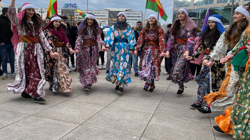 Di pîrozbahiyê de hevseroka KON-MED’ê Zubeyde Zumrut û hevseroka KCDK-E’yê Fatoş Goksungur axivîn. Zumrut anî ziman ku hebûna Rêberê Gelê Kurd Abdullah Ocalan, hebûna gelên Rojhilata Navîn e. Goksungur jî got ku îro roja zindîbûna gelekî ye û banga tevlêbûna çalakiya ku wê 15’ê Nîsanê li Dusseldorfê ji bo Rêberê Gelê Kurd Abdullah Ocalan bê lidarxistin, kir.