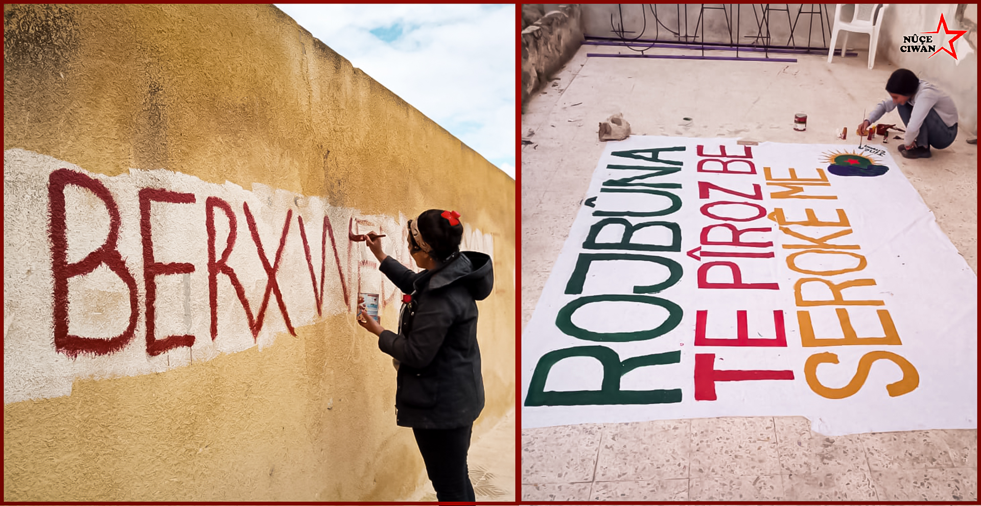 NAVENDA NÛÇEYAN – Bi boneya rojbûna 74ʹan a Rêber APO ku dikeve 4ʹê Nîsanê, Jinên ciwan bi li Şeba taybetî ji bo rojbûna Rêber APO çalakîyek rengîn birêxistin kirin. Jinên ciwan li ser dîwêr gotine ji Rêber APO: “Jina ku min hez dike, berê xwe bide Botanê” xêz kirine.