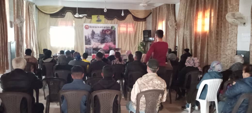 ŞEHBA – Bi dirûşmeya “Mala xwe, taxa xwe, welatê xwe biparêze” li her qadê dest bi rêze civînan kirin. Îro li navçeya Fafînê gel û ciwanan re li ser hemlê civîn hat çê kirin. Di civînê de rewşa Rêber APO, şerê Zap Avaşîn Metîna û fedayîtîya Gerîla hat niqaş kirin. Her wiha di civînê de Sinevîzyon hat temaşe kirin. Civîn bi sloganên “Bê Serok Jîyan nabe”, “Bijî Berwedana Gerîlla” û “Jin Jiyan Azadî” dawî bû.