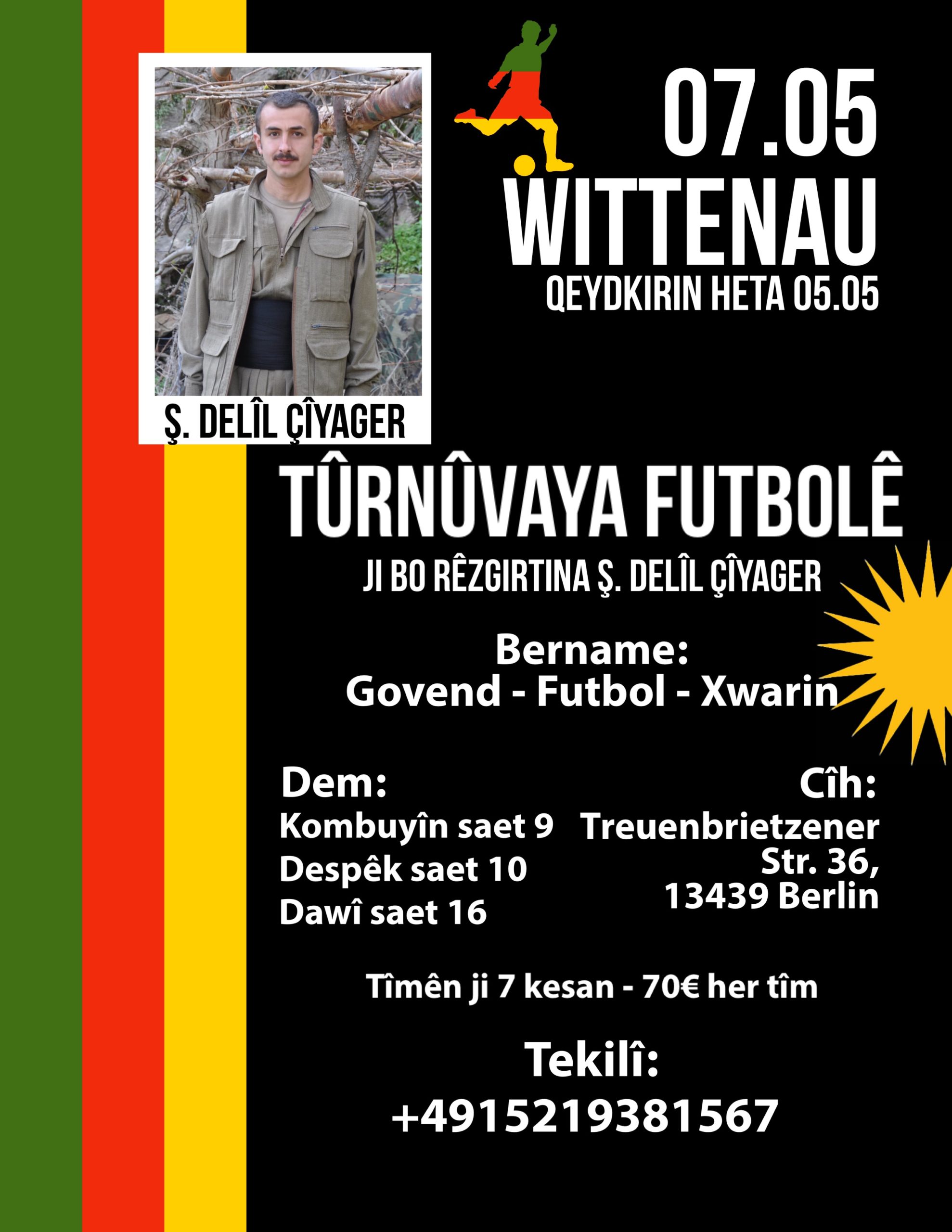 BERLÎN – Ji bo bîranîna Şehîd Delîl Çîyager wê di 7’ê Gulanê de li Wittenau ya Berlînê tûrnûvaya futbolê ya ciwanan bê lidarxistin.