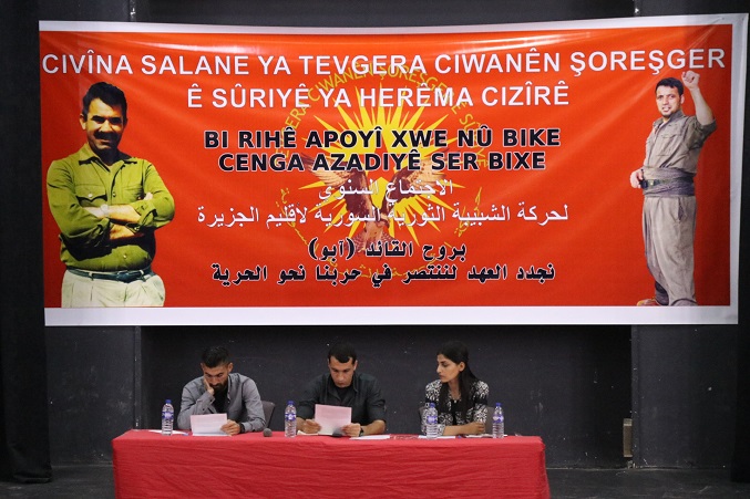 QAMIŞLO- Tevgera Ciwanên Şoreşger a Sûriyeyê û Yekitiya Jinên Ciwan a herêma Cizîrê civîna xwe salê bi beşdariya 600 delegeyan û li Navenda Çand û Hunerê ya Mihemed Şêxo ya Qamişlo bi dirûşma “Bi rihê Apoyî xwe nû bike cenga azadiyê ser bixe” li dar xist.