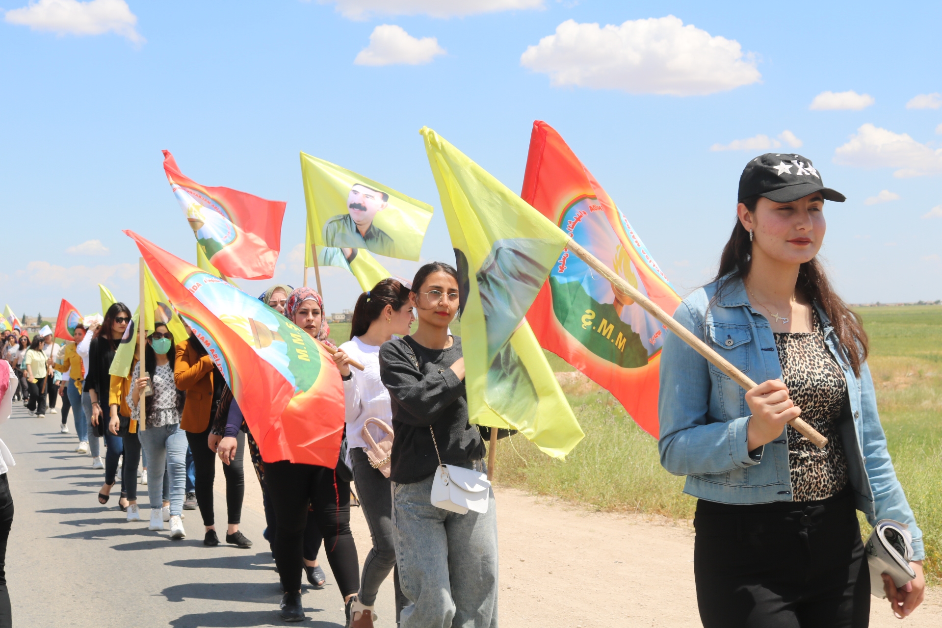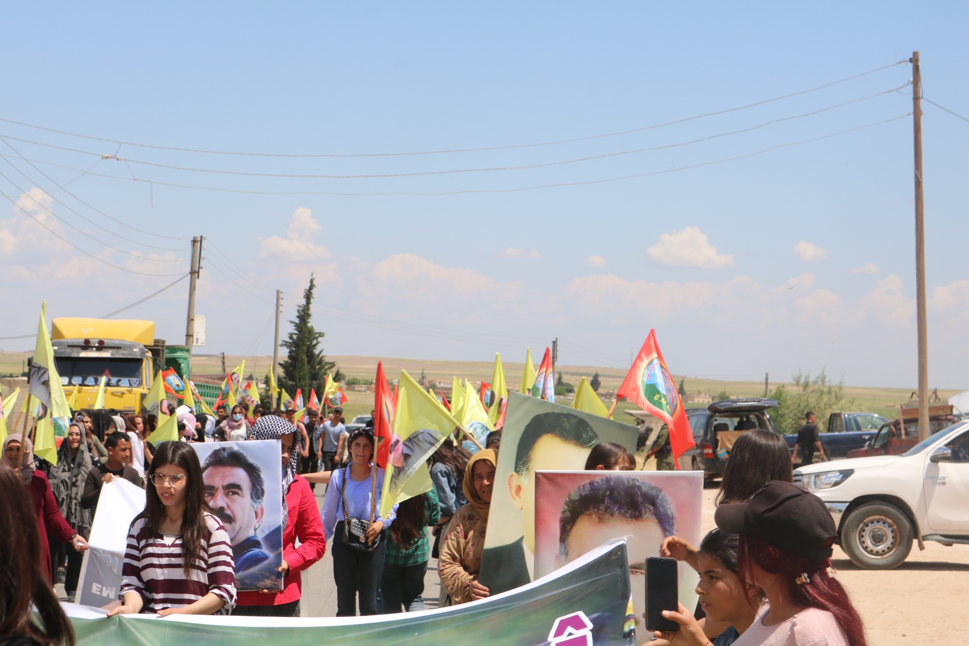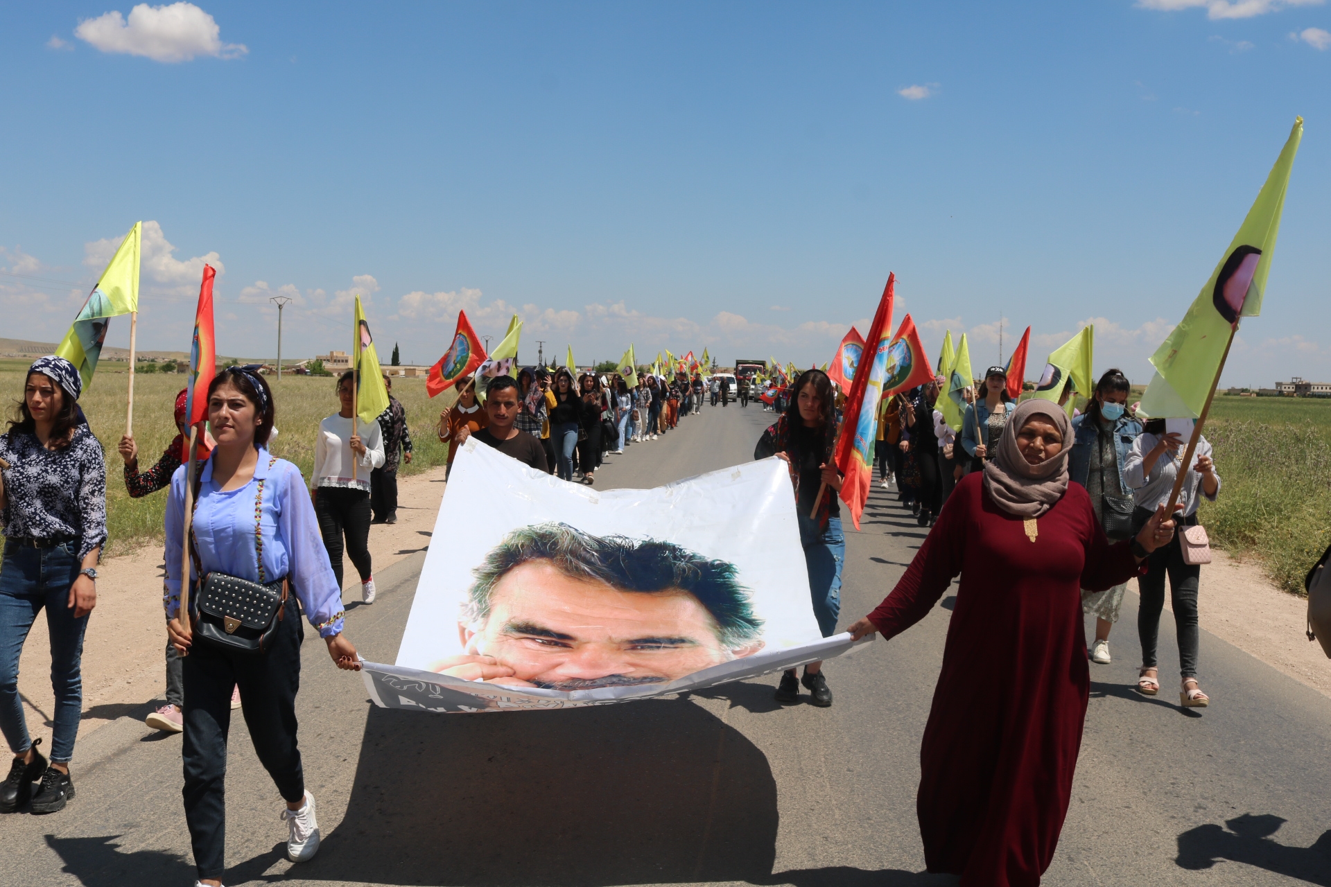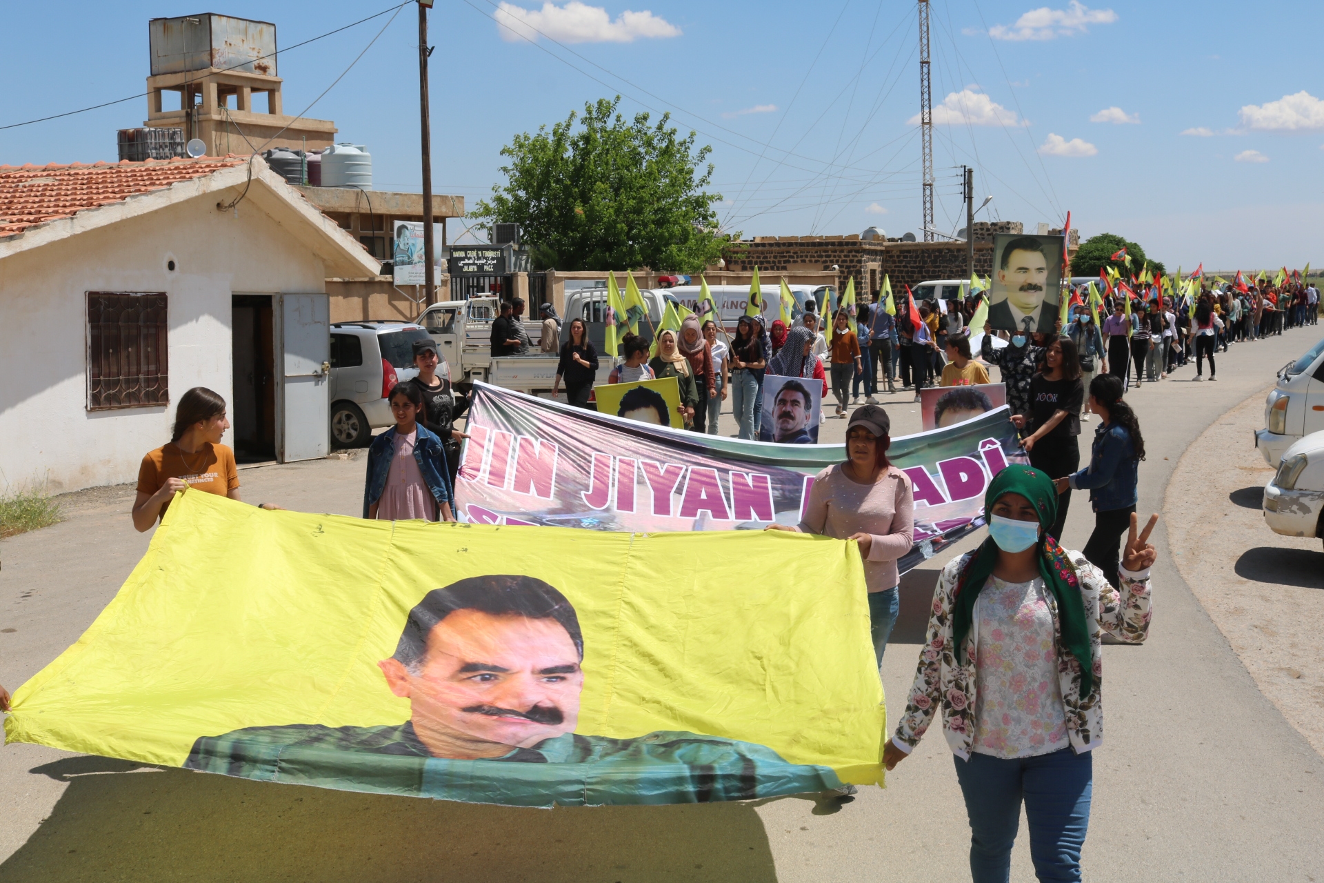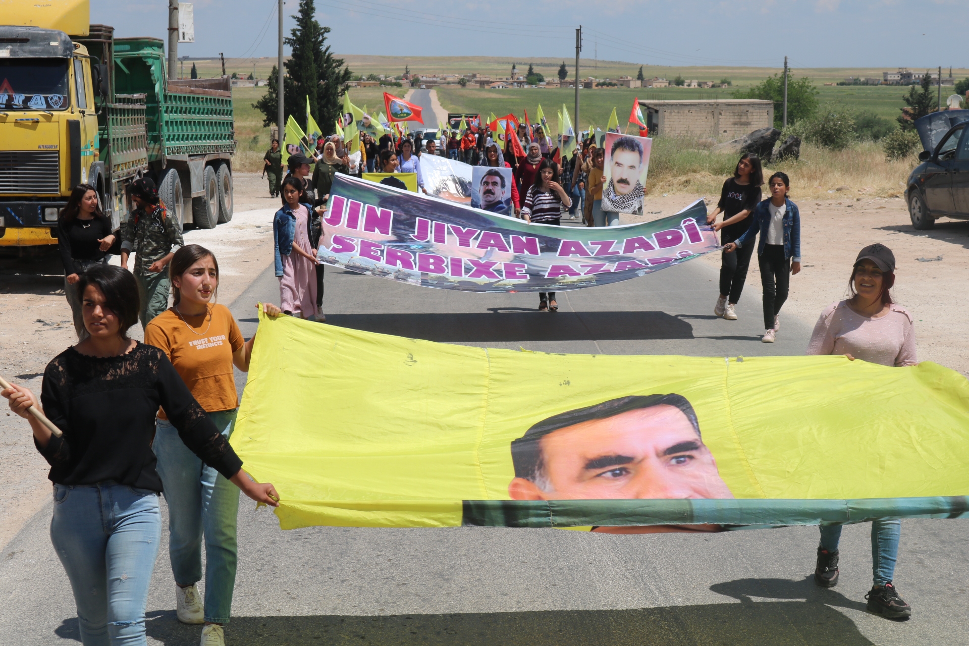 KOBANE – Yekîtiya jinên ciwan bi diruşmeya “Jin Jiyan Azadî Serbixe Azadî” çalakî lidar xist. Xwişk û zarokên şeḥîda bi pêşengtiya jinên ciwan Îro li Bajarê Kobanê li navçeya Çelebiyê. ji bo azadiya fizîkî ya RÊBER APO çalakî lidar xistin. bi dehan jinên ciwan beşdarî çalakiyê bûn. di meşê de diruşmeyê bê serok jiyan nabe hat berz kirin. di dawiyê de daxuyanî hat xwendin. bi sloganan çalakî dawî bû.