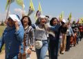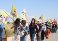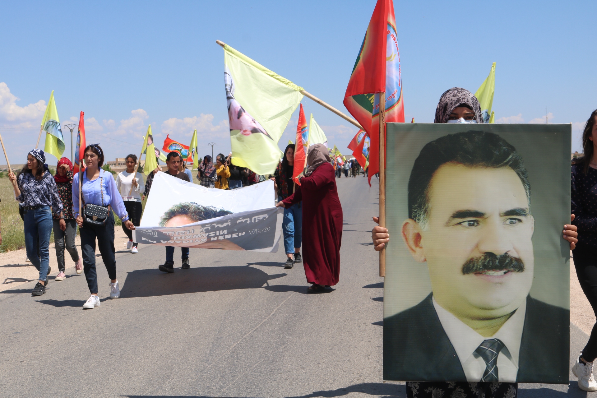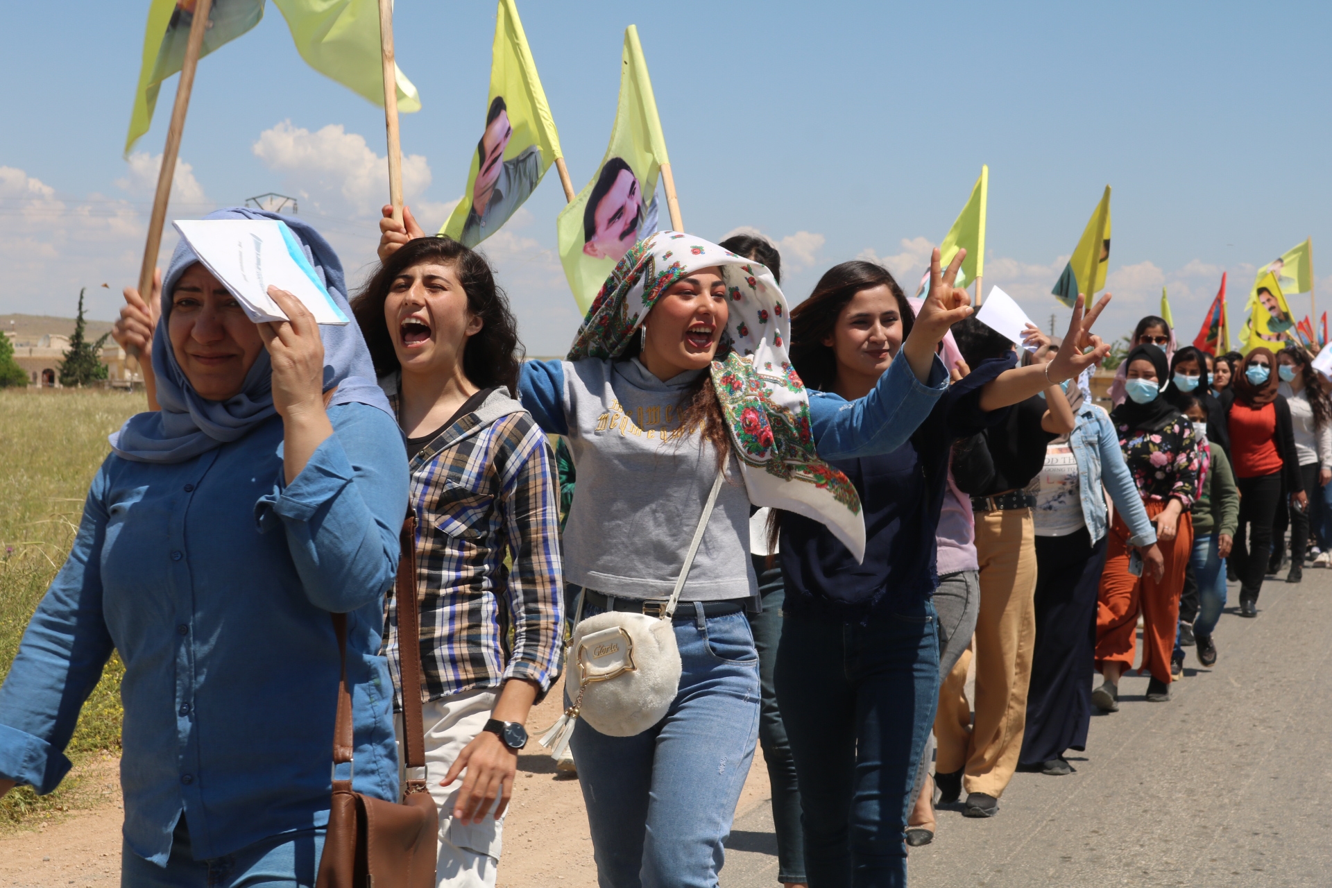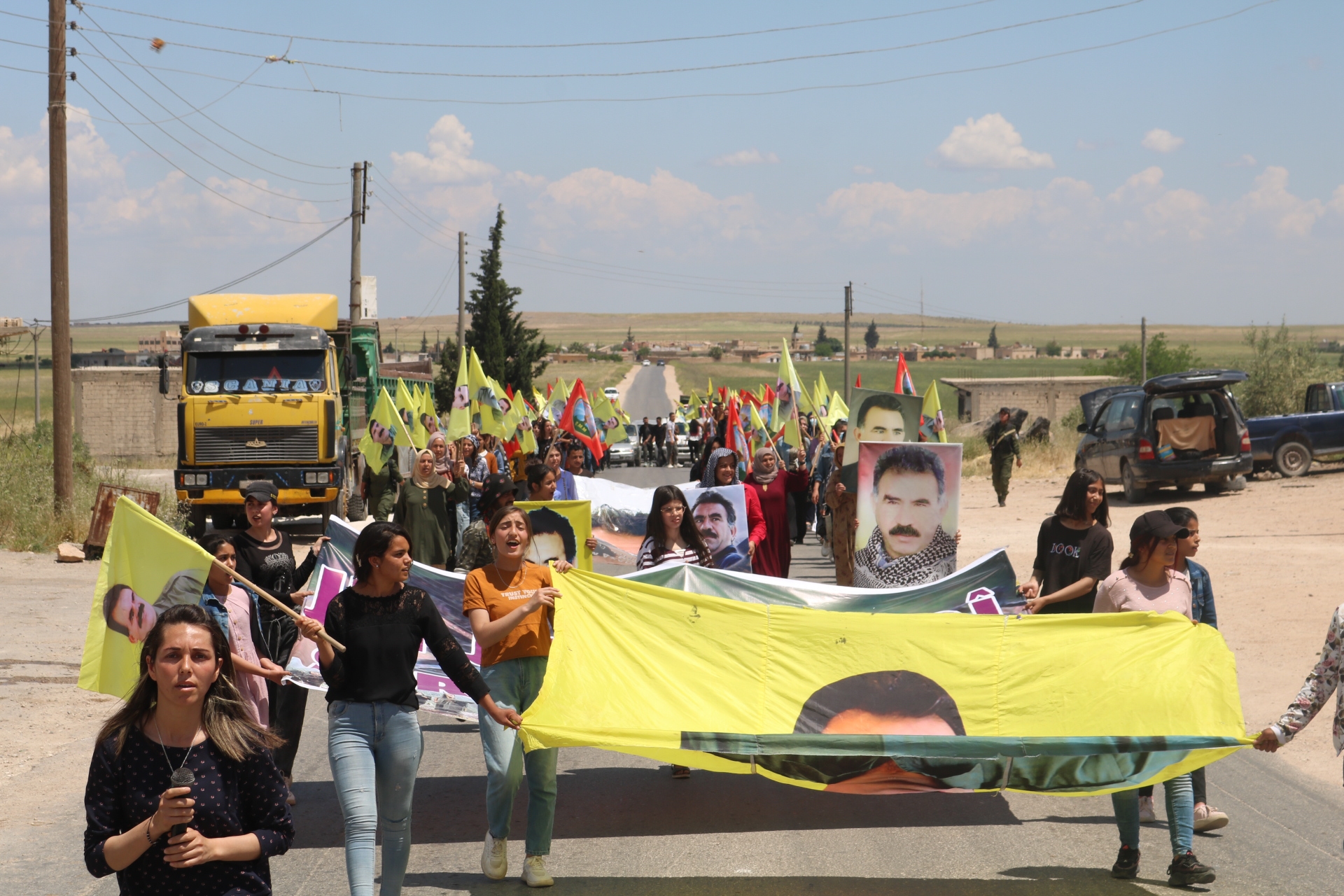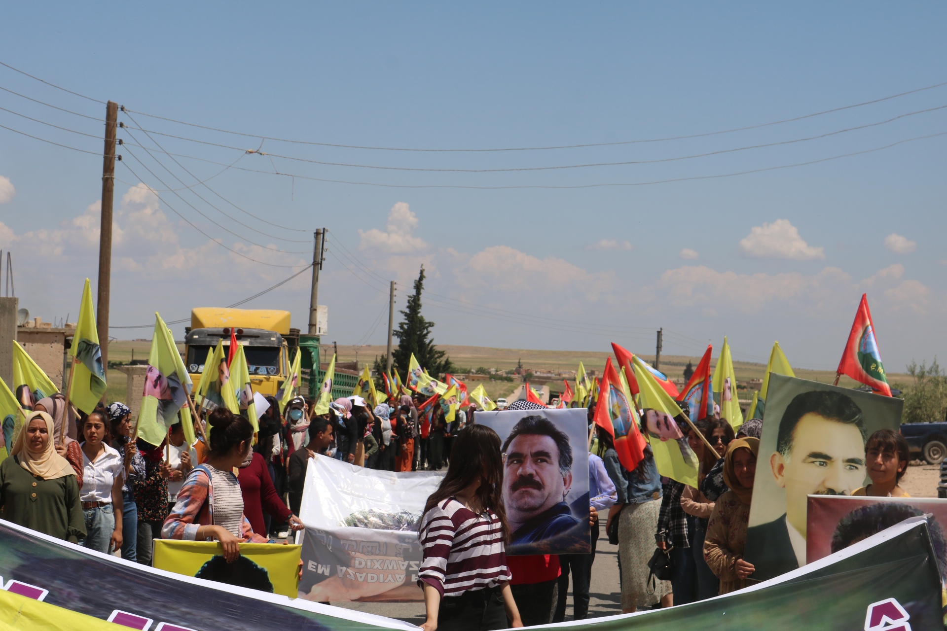 KOBANE – Yekîtiya jinên ciwan bi diruşmeya “Jin Jiyan Azadî Serbixe Azadî” çalakî lidar xist. Xwişk û zarokên şeḥîda bi pêşengtiya jinên ciwan Îro li Bajarê Kobanê li navçeya Çelebiyê. ji bo azadiya fizîkî ya RÊBER APO çalakî lidar xistin. bi dehan jinên ciwan beşdarî çalakiyê bûn. di meşê de diruşmeyê bê serok jiyan nabe hat berz kirin. di dawiyê de daxuyanî hat xwendin. bi sloganan çalakî dawî bû.
