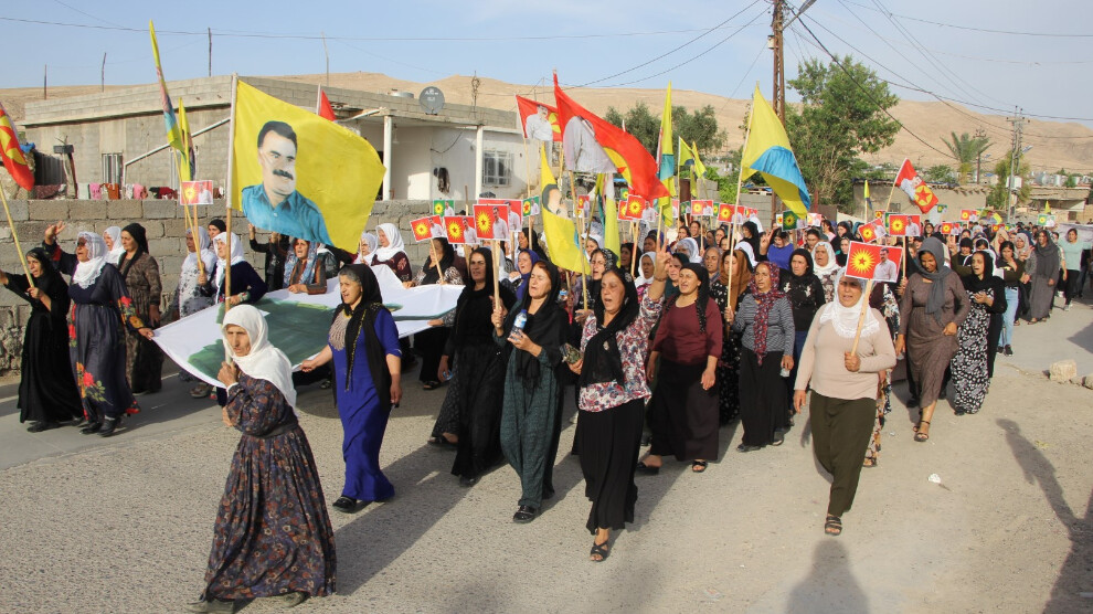 MÊXMUR – Şêniyên Wargeha Penaberan a Şehîd Rûstem Cûdî (Mexmûr) ji bo şkandina tecrîda girankirî ya li ser Rêberê Gelê Kurd Abdullah Ocalan meşiya. Meş, bi kombûna şêniyan, li ber Saziya Malbatên Şehîdan dest pê kir û heta li ber derê Parka Şehîd Aryen Cûdî dewam kir. Di meşê de dirûşmeyên “Bê Serok jiyan nabe”, “Bijî Serok Apo” û “Jin, jiyan, azadî” hatin berzkirin. Her wiha wêne û posterên Rêberê Gelê Kurd Abdulah Ocalan hatin hildan. Piştî ku meş li ber derê Parka Şehîd Aryan Cûdî qediya, deqeyek rêz ji bo giyanê tevahî şehîdên Azadiya Kurdistanê hate girtin. Piştî rêzgirtinê li ser navê şêniyên wargehê Hevseroka Rêveberiya Meclîsa Gel a Mexmûrê Filîz Bûdak axivî.